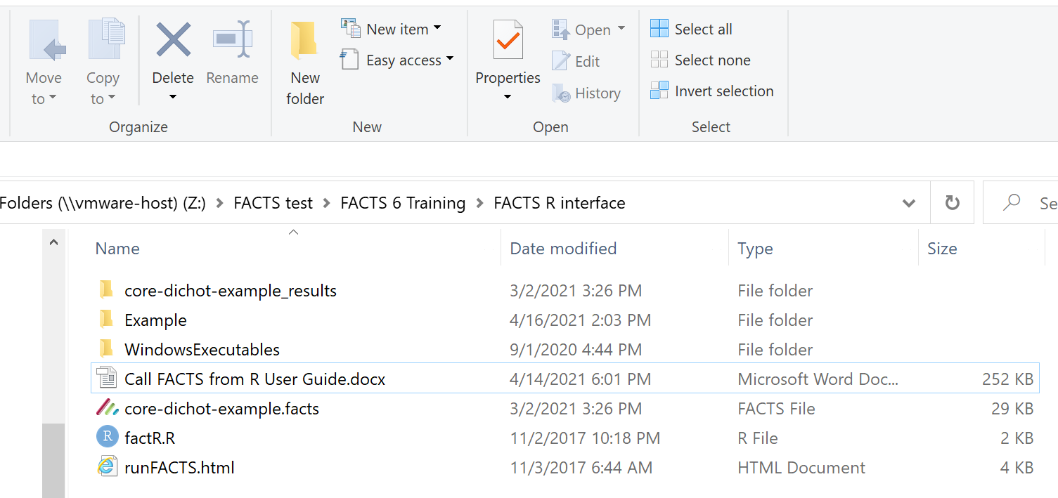 - The folder “Example” where we will run FACTS.