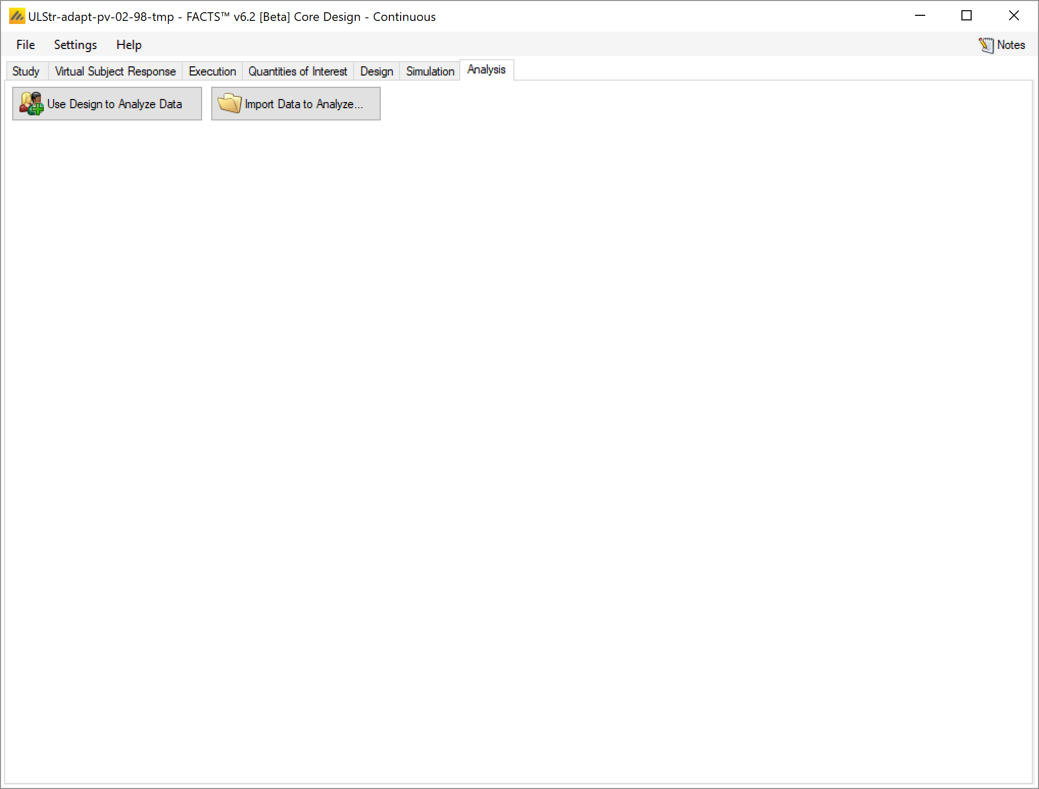 The analysis tab allows the user to supply a specific data set for analysis by the design specified in the Design tab of the “.facts” file.