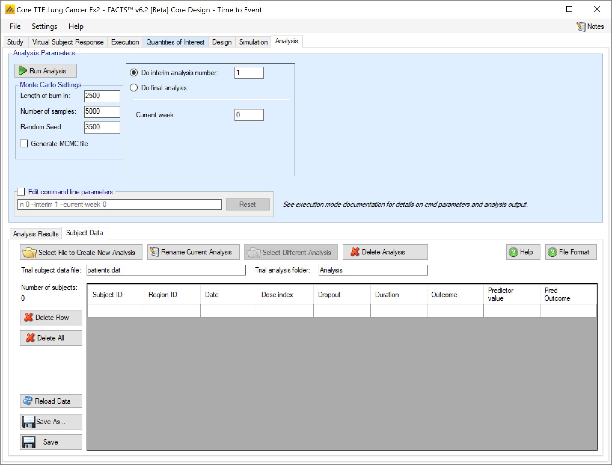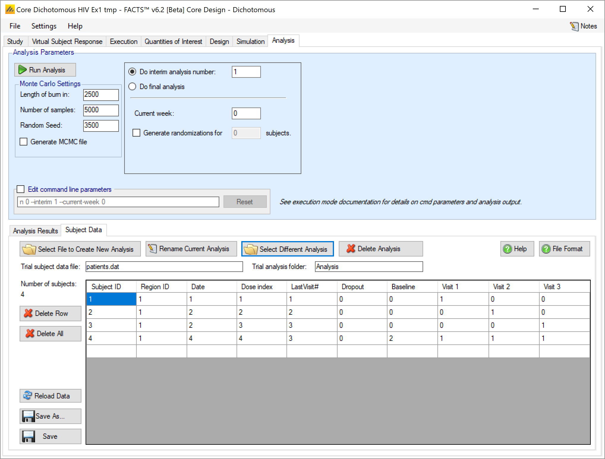 If data is entered and then ‘Run Analysis’ clicked, the data is saved to a file called ‘patients.dat’ and the analysis results saved to a folder called ‘Analysis’ within the “_results” folder of the design.