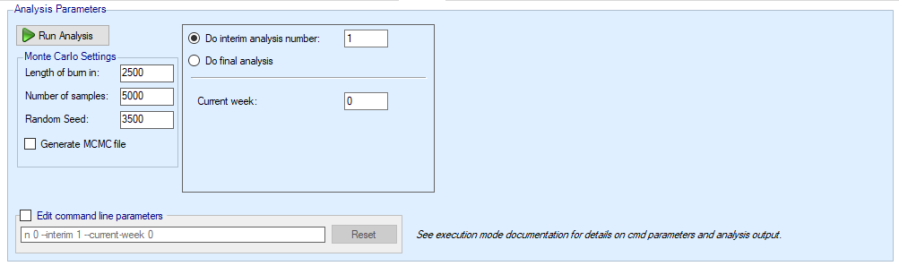 At the top of the analysis tab there are various parameters that can be set to control the analysis performed: