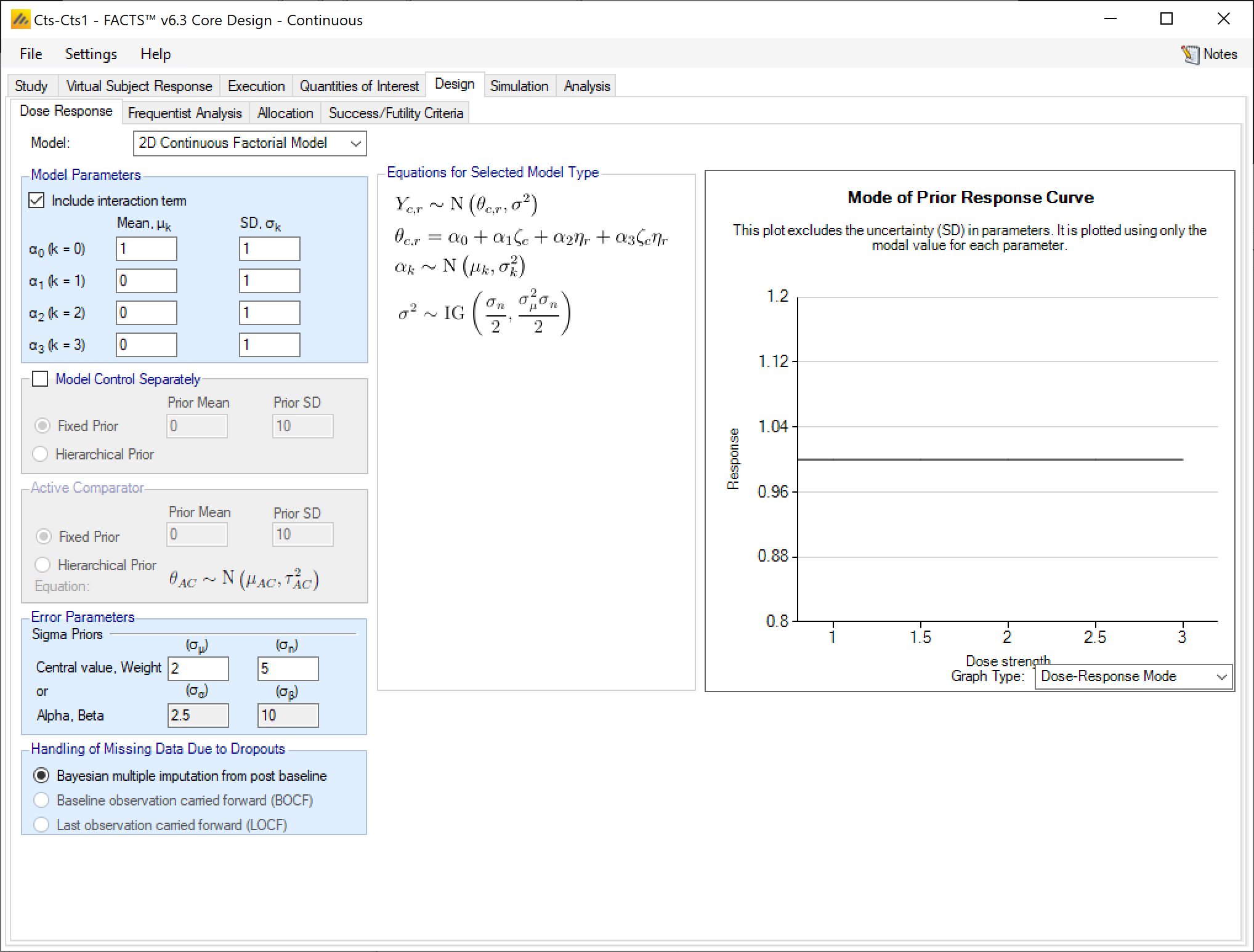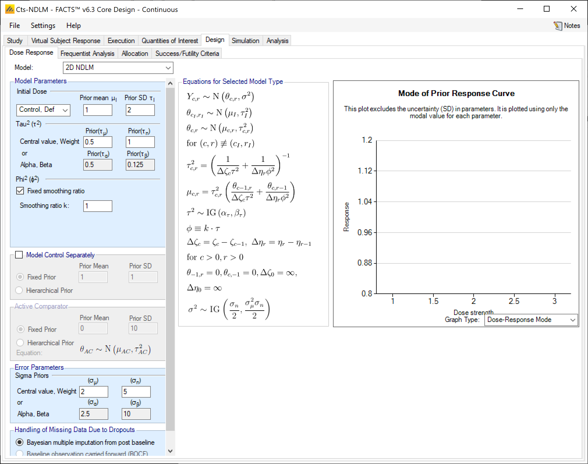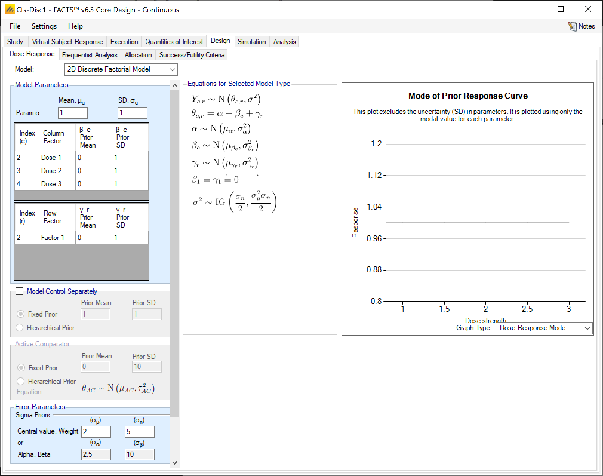 where \(\sigma_\mu\) and \(\sigma_n\) are specified on the Dose Response tab in FACTS under Error Parameters.