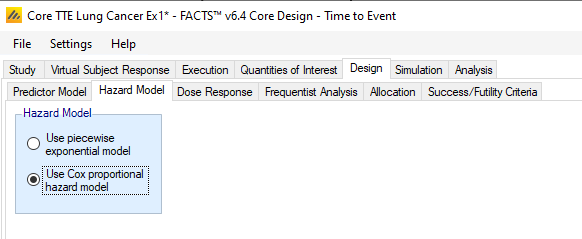 The two main differences in the design tabs available for a time-to-event endpoint, rather than continuous or dichotomous, are ways that the control arm hazard model is defined and the use of a predictor model.