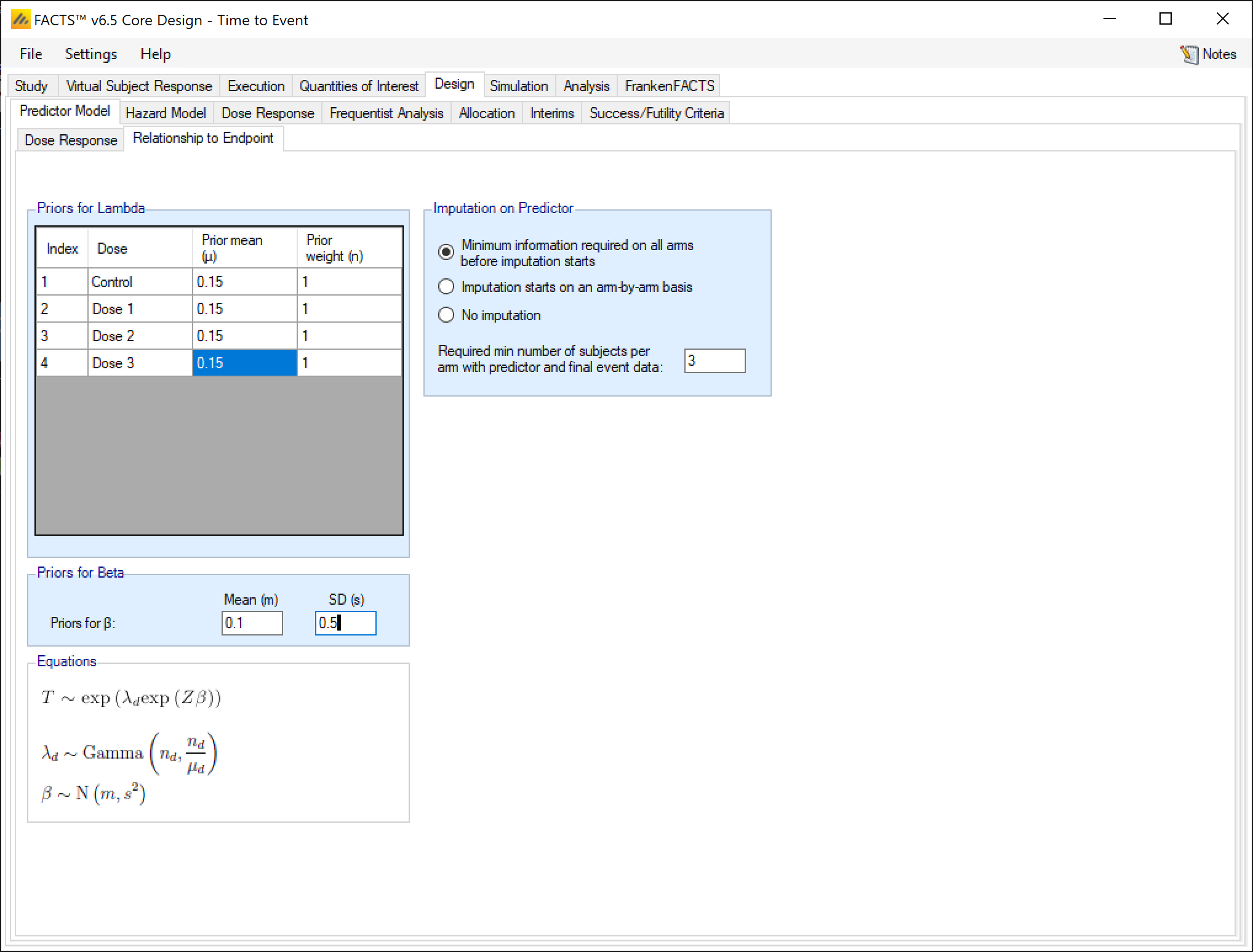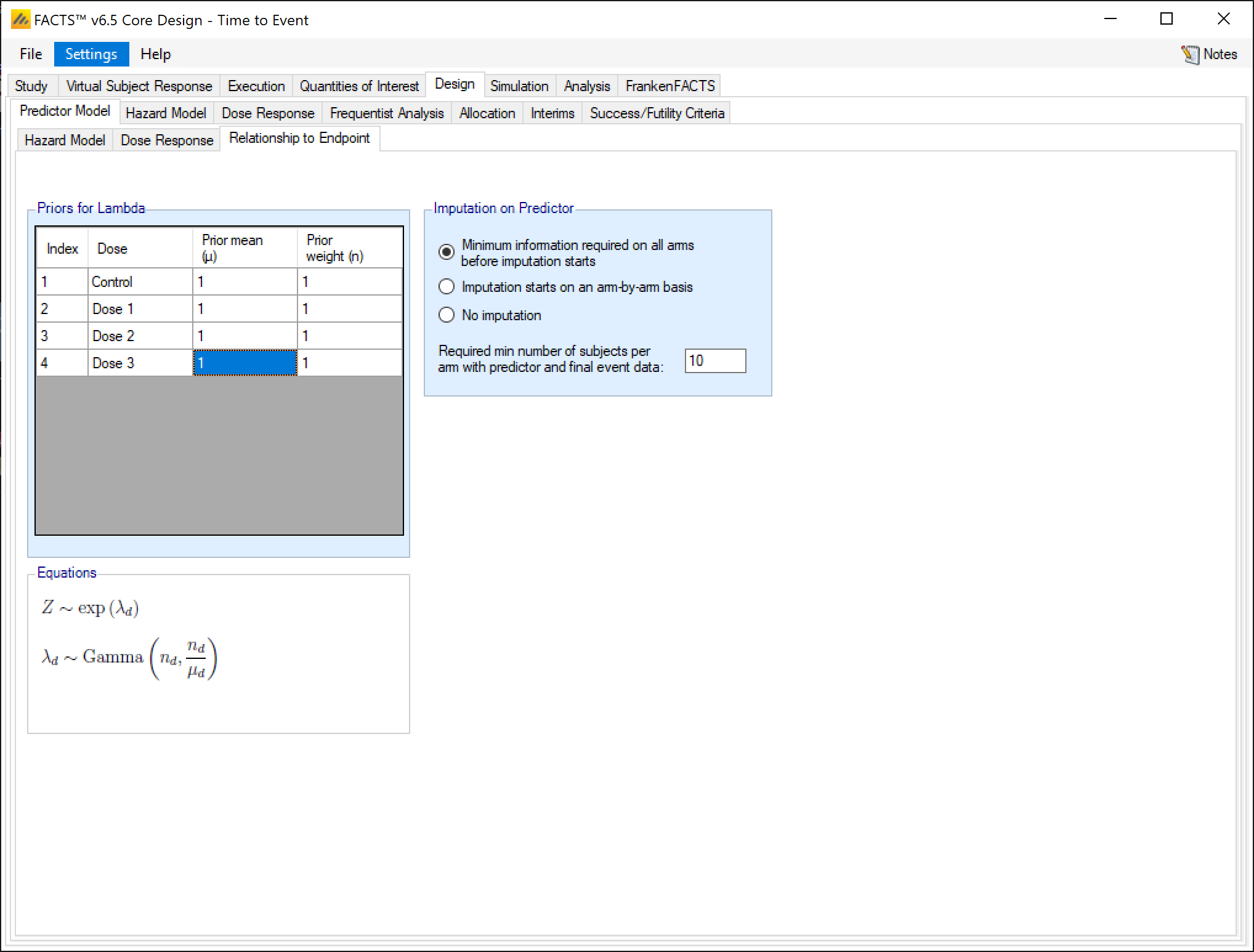 Allows subjects’ predictor event endpoint to be imputed (Imputation is described in the FACTS Core Design Guide).