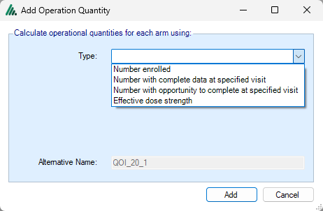 In addition to being used in decision making, creating an operational QOI guarantees that the calculated quantity is reported in the simulation output. This can be useful to force reporting of the number of subjects that have completed a specific visit, which isn’t reported by default.