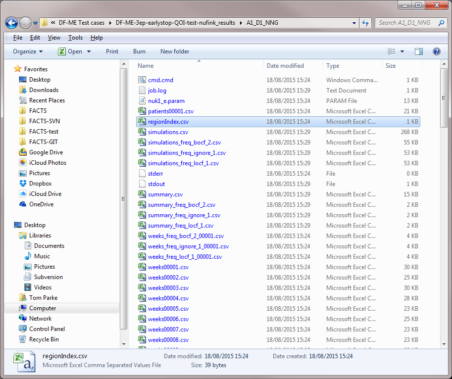 | Longmod_<Endpoint> <model> <Param> <Visit> | L*P*V | If the analysis includes longitudinal modelling then the samples of the parameters of the longitudinal models are output. The number of models depends on the number of different longitudinal fits the user has specified (one over all arms, one for control and one for all treatment arms, model all arms separately, etc.), the number of parameters the model has, and if these are fitted per visit (which depends on the model being fitted), then the number of visits. |