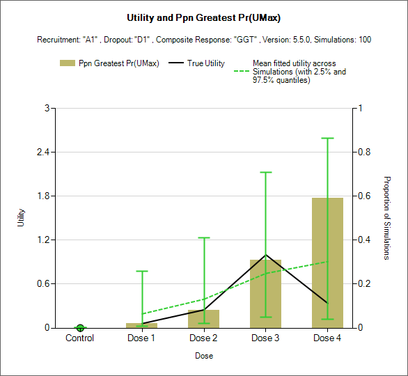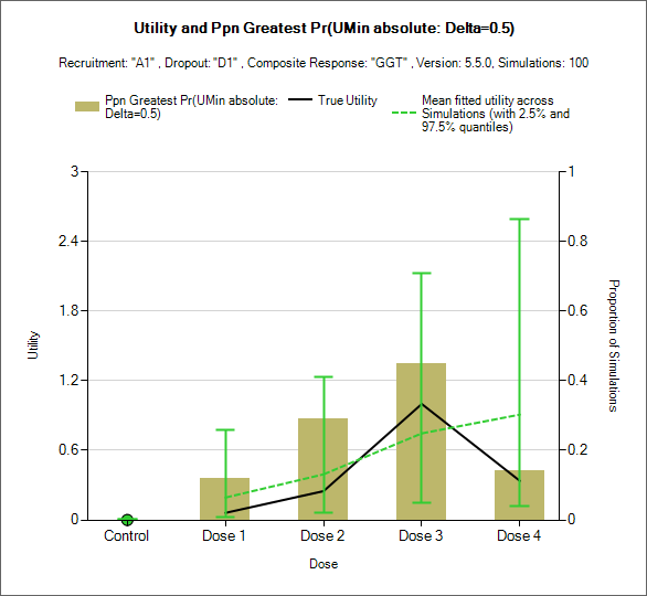 | Mean Utility <Endpoint> <Dose> | D per dichotomous endpoint | ✔ | ✔ | The mean estimate of the utility of this endpoint |