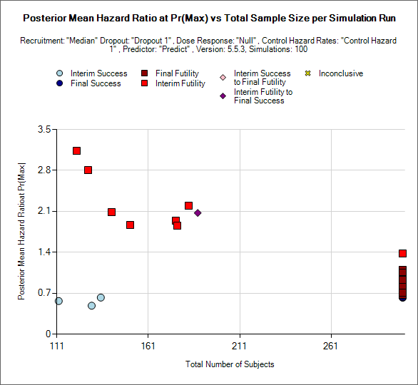 | Success / Futile Combined | Flags indicating if the interim or final analysis determined success or futility taking all the factors defined for Success/Futility into account: 0 if the conditions were not met, 1 it the conditions were met. If success and futility conditions have been defined that are not mutually exclusive and both sets of combined conditions are met, FACTS will pick one of the outcomes as met but not the other. In order to discourage defining Success and Futility rules that can both be true FACTS does not guarantee which outcome will be selected. |