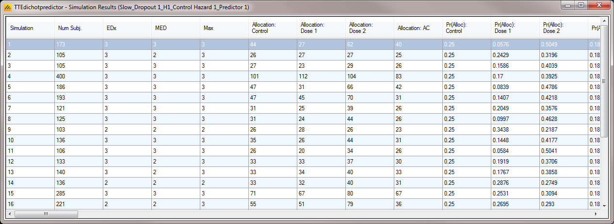 | True Predictor Sigma <dose> | D | ✔ | ✔ | The true sigma of the predictor response of each treatment arm, if the predictor is a continuous endpoint |