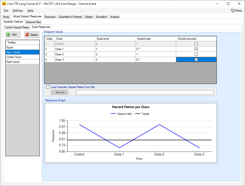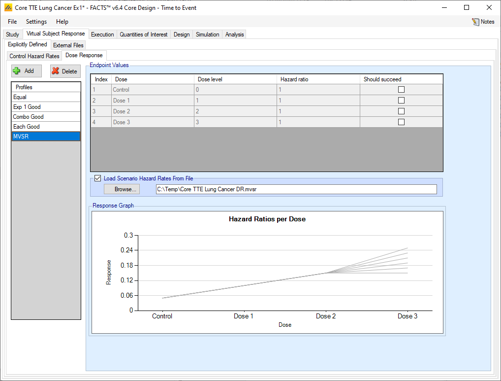 If the “Load scenario hazard rates from a file” option is selected then in scenarios using this profile the simulations will use a range of dose responses across the simulations.