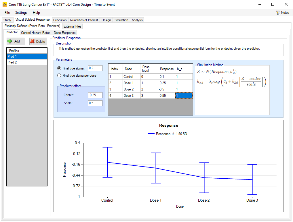 If a predictor with a continuous endpoint is being used then there is a new tab in the VSR section to allow the specification of profiles that define how the predictor endpoint is to be simulated.