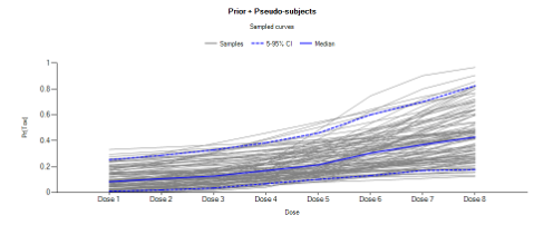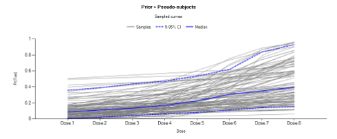 | Pr(Eff) Lower <Dose> | One per dose – Efficacy only | The lower bound of the 95% credible interval of the fitted efficacy at each dose. |