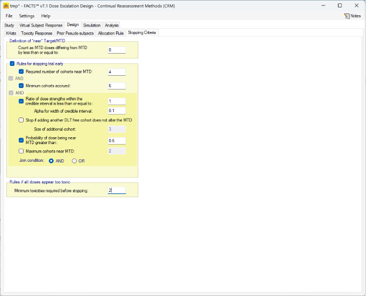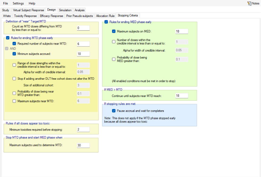 - It is now possible to define the concept of “near” target/MTD as part of stopping rules, for both fine-grained and regular dosing.