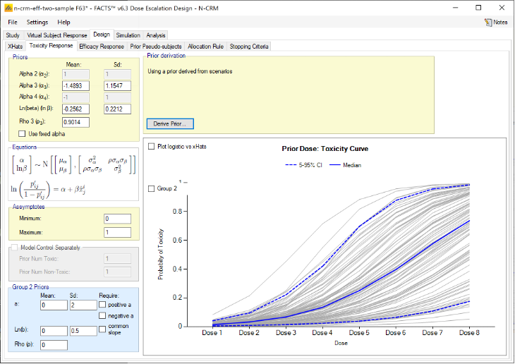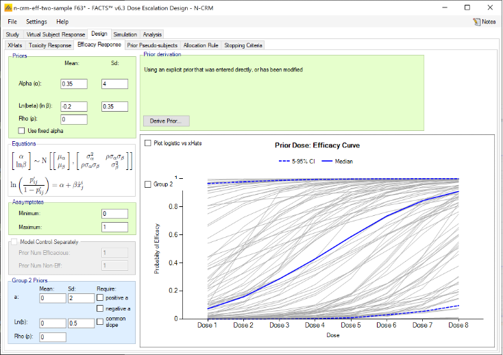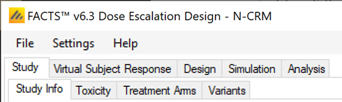 This user guide assumes some limited general familiarity with FACTS and concentrates on describing the interface for designs using the N-CRM approach. See the FACTS Dose Escalation user guide for a general introduction to the FACTS Dose Escalation user interface.