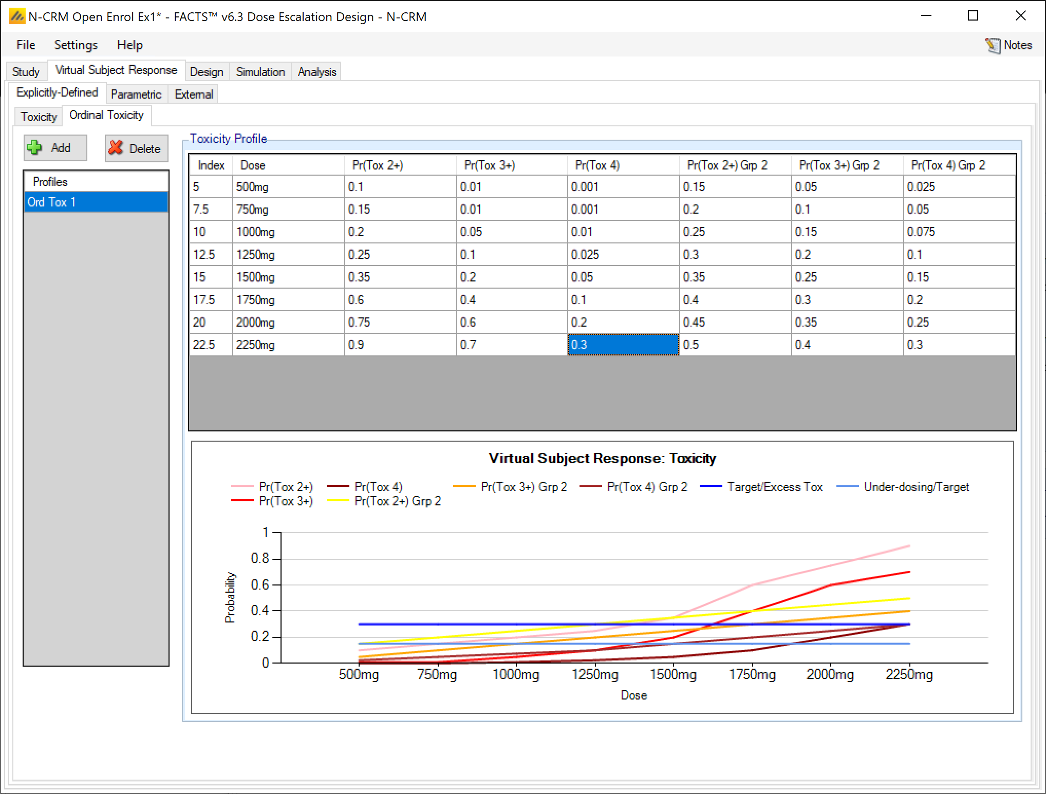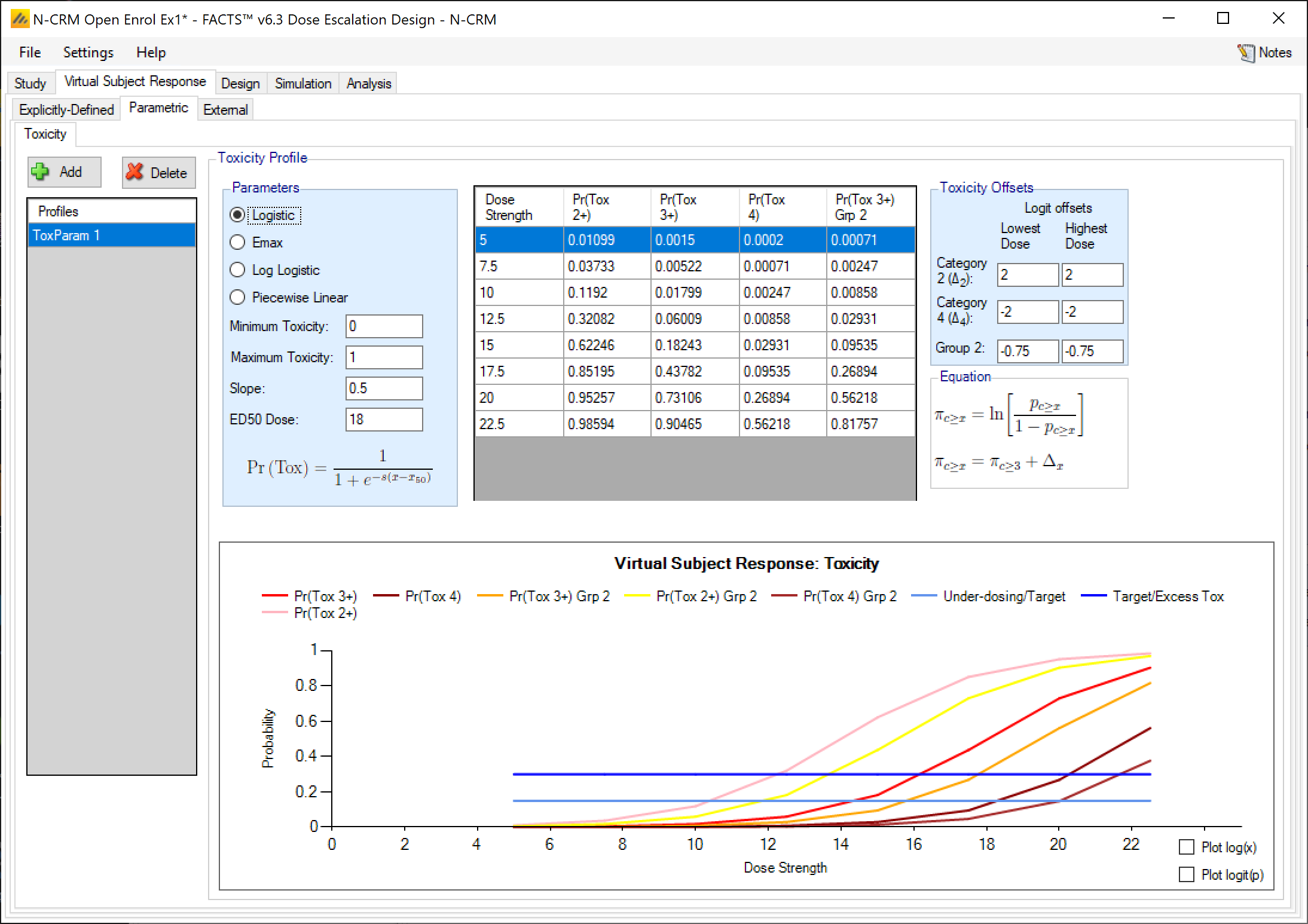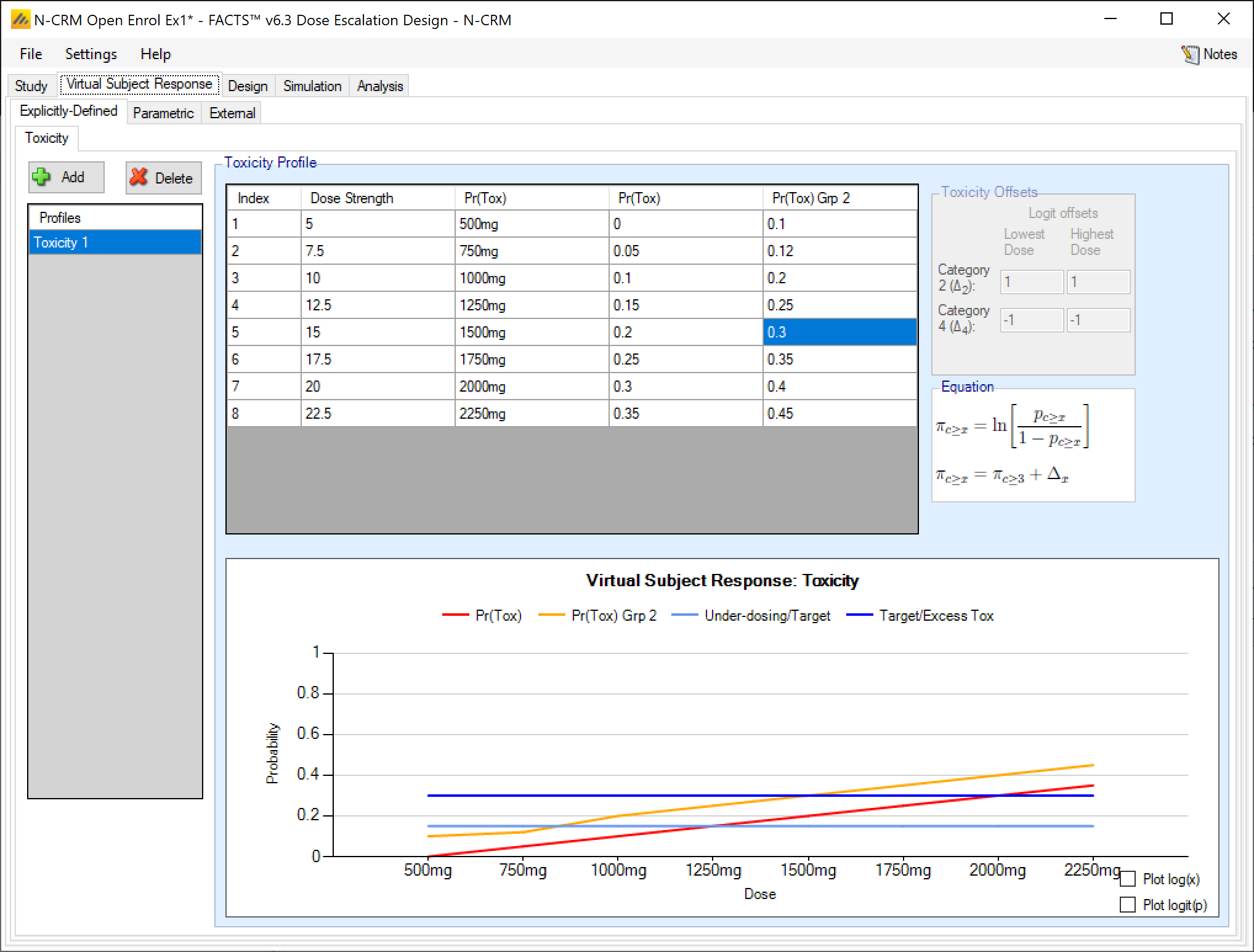In FACTS 6.2 features available separately in the other FACTS CRM engines (CRM (Toxicity), bCRM & CRM Ordinal) were all incorporated into N-CRM. This allowed these features to be used in conjunction with N-CRM’s target toxicity band methodology, overdose control and open enrollment features, as well as in conjunction with each other for the first time.