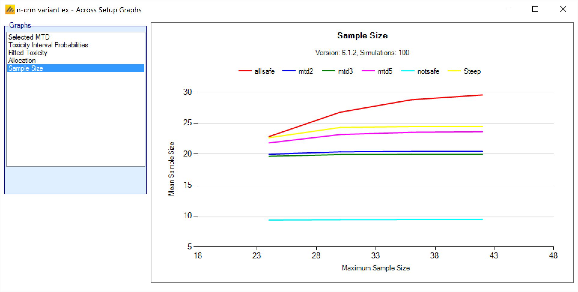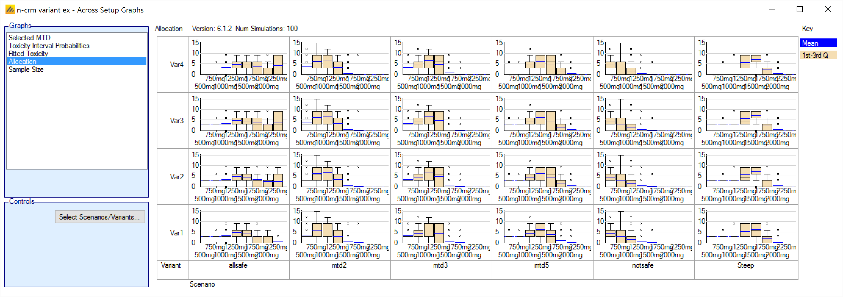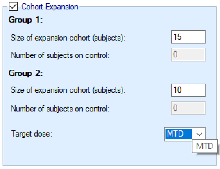 | PostCE MTD | 1 – Expansion cohort only (simulations only) | In the case of a trial using an expansion cohort, this is the dose that is the model MTD at the end of the dose escalation phase, after the expansion cohort. |