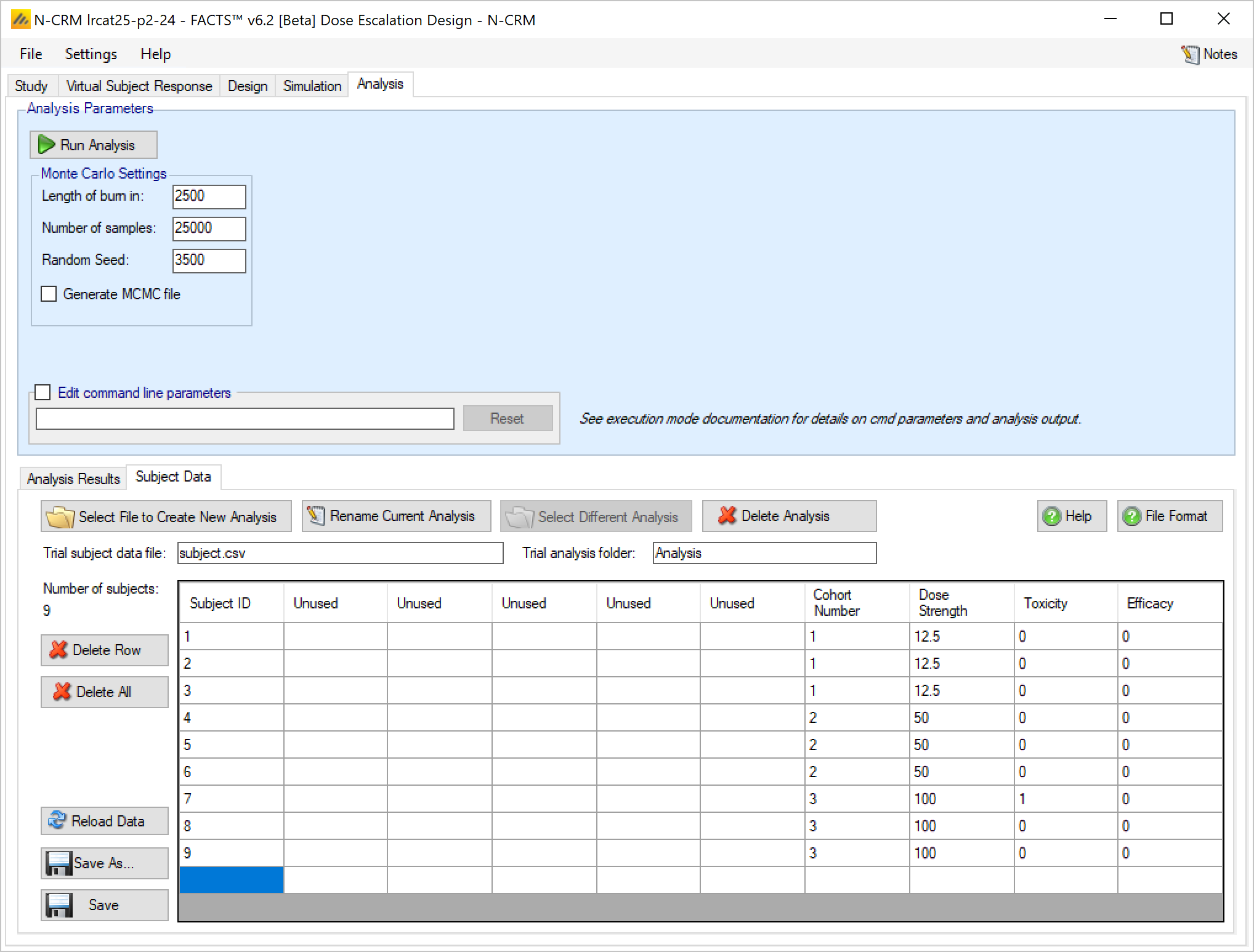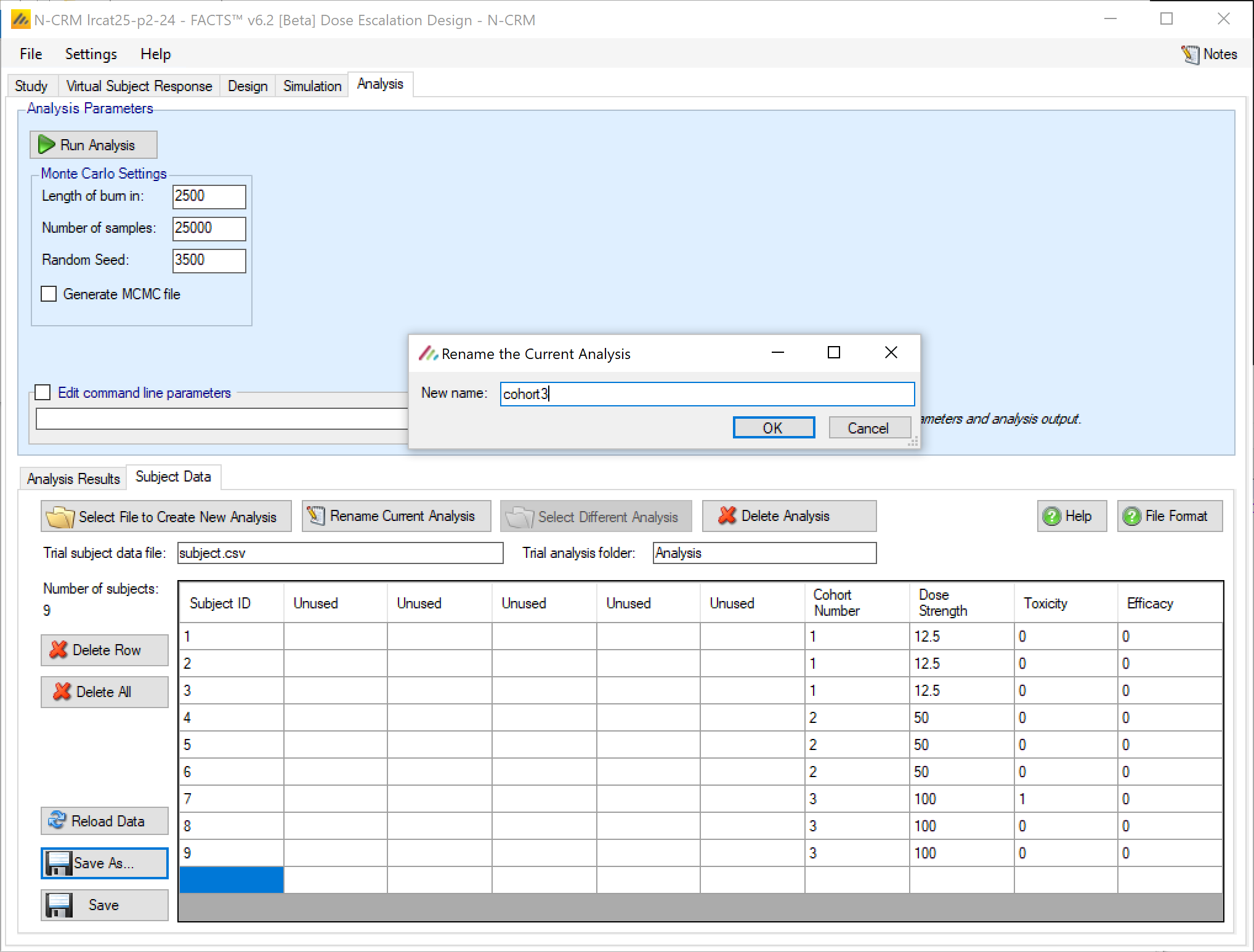 In FACTS 7.0 the only change was on the Analysis tab, when entering subject data manually, the FACTS GUI now ensures that a cohort number is entered for every subject.