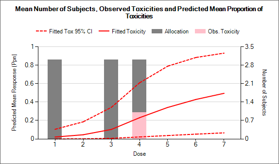 | Toxicity <dose index> | One per dose | The mean of the final posterior estimate of the toxicity rate at each dose. |