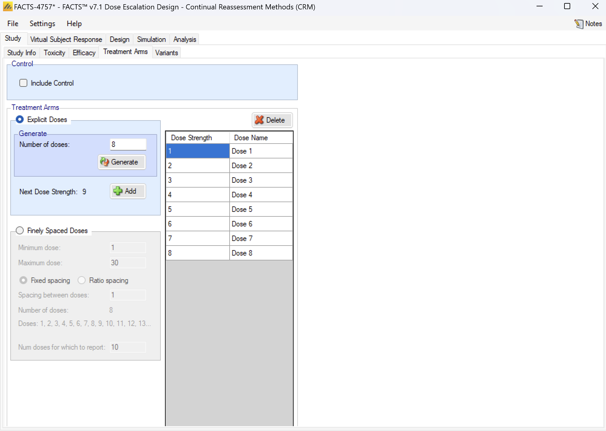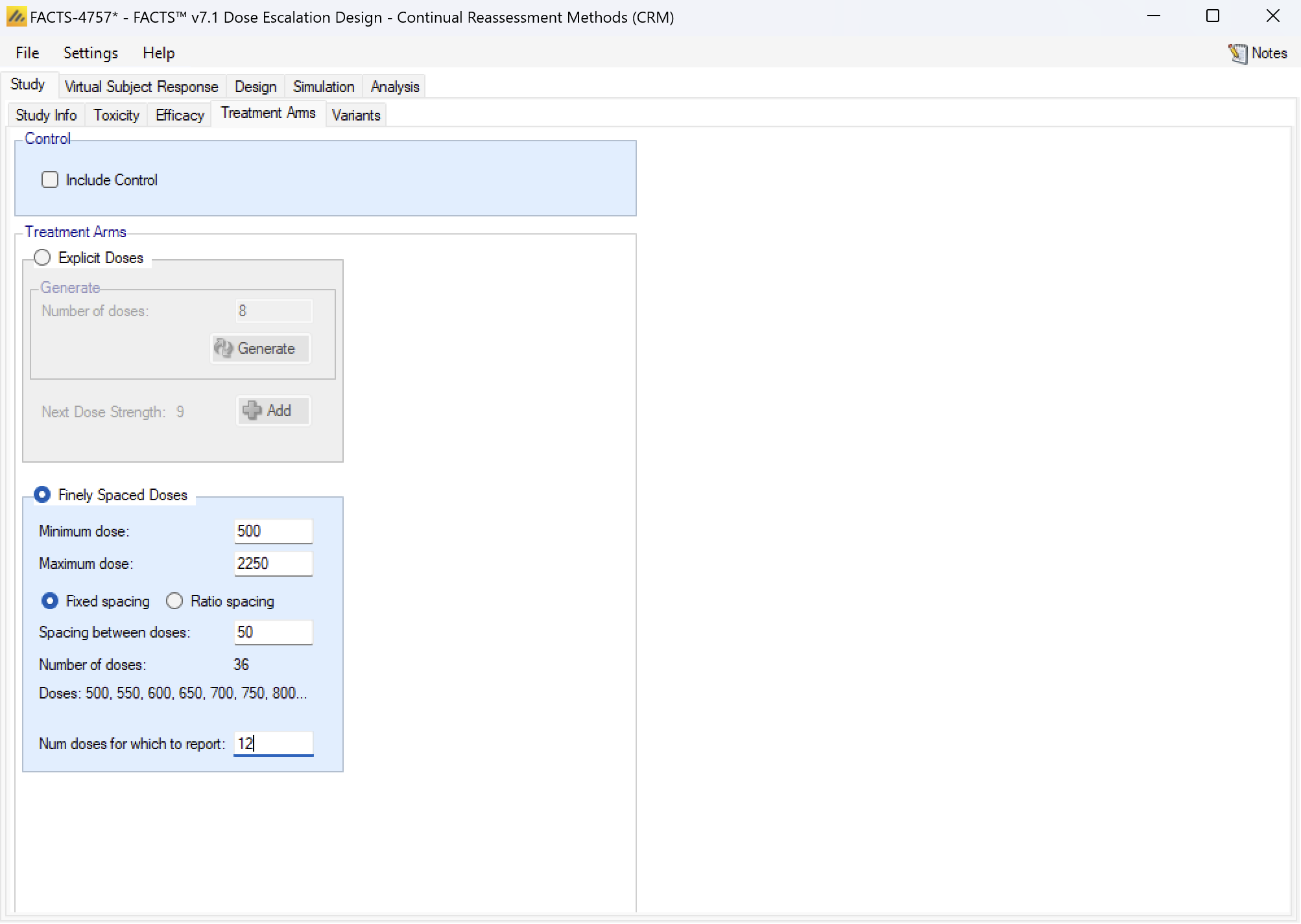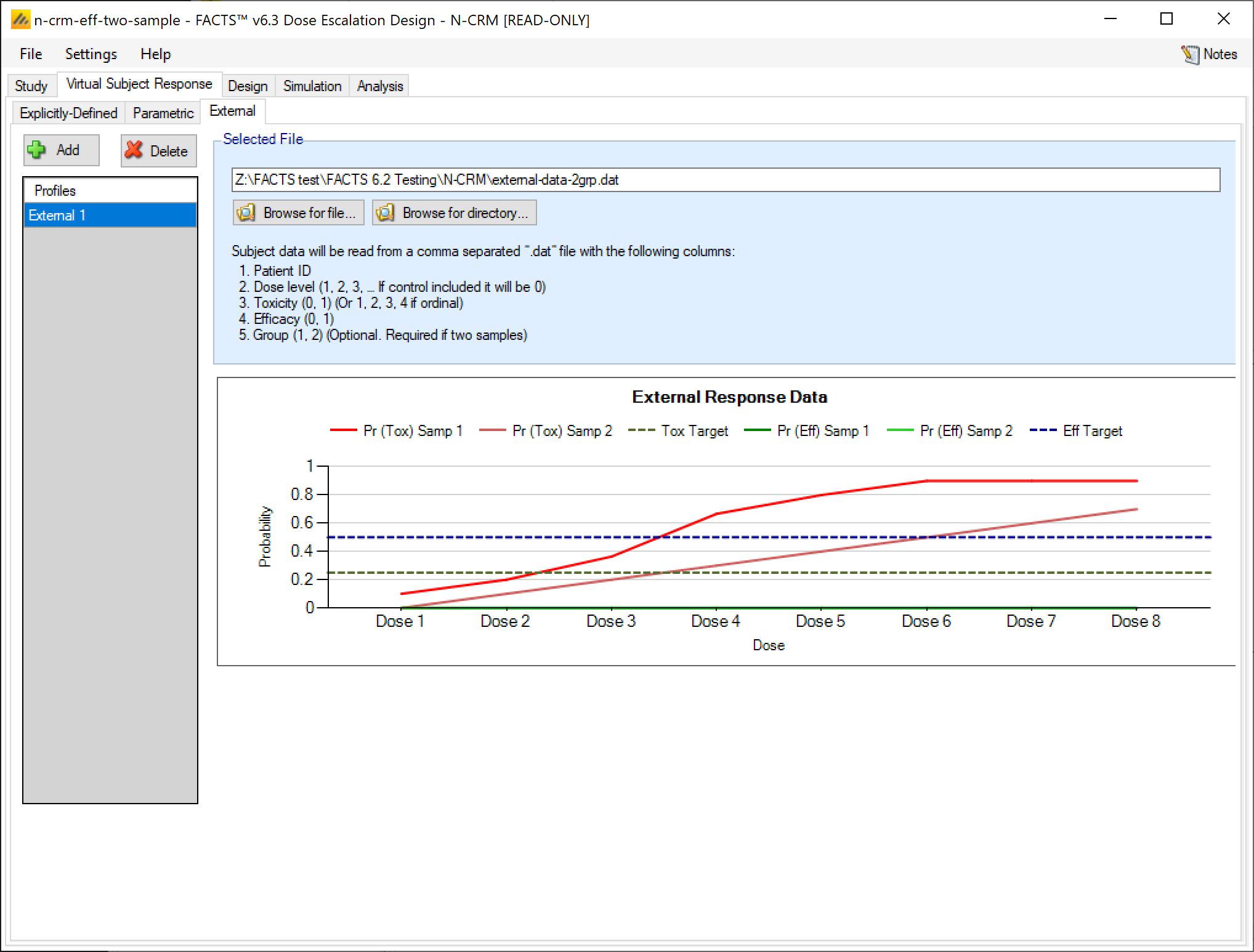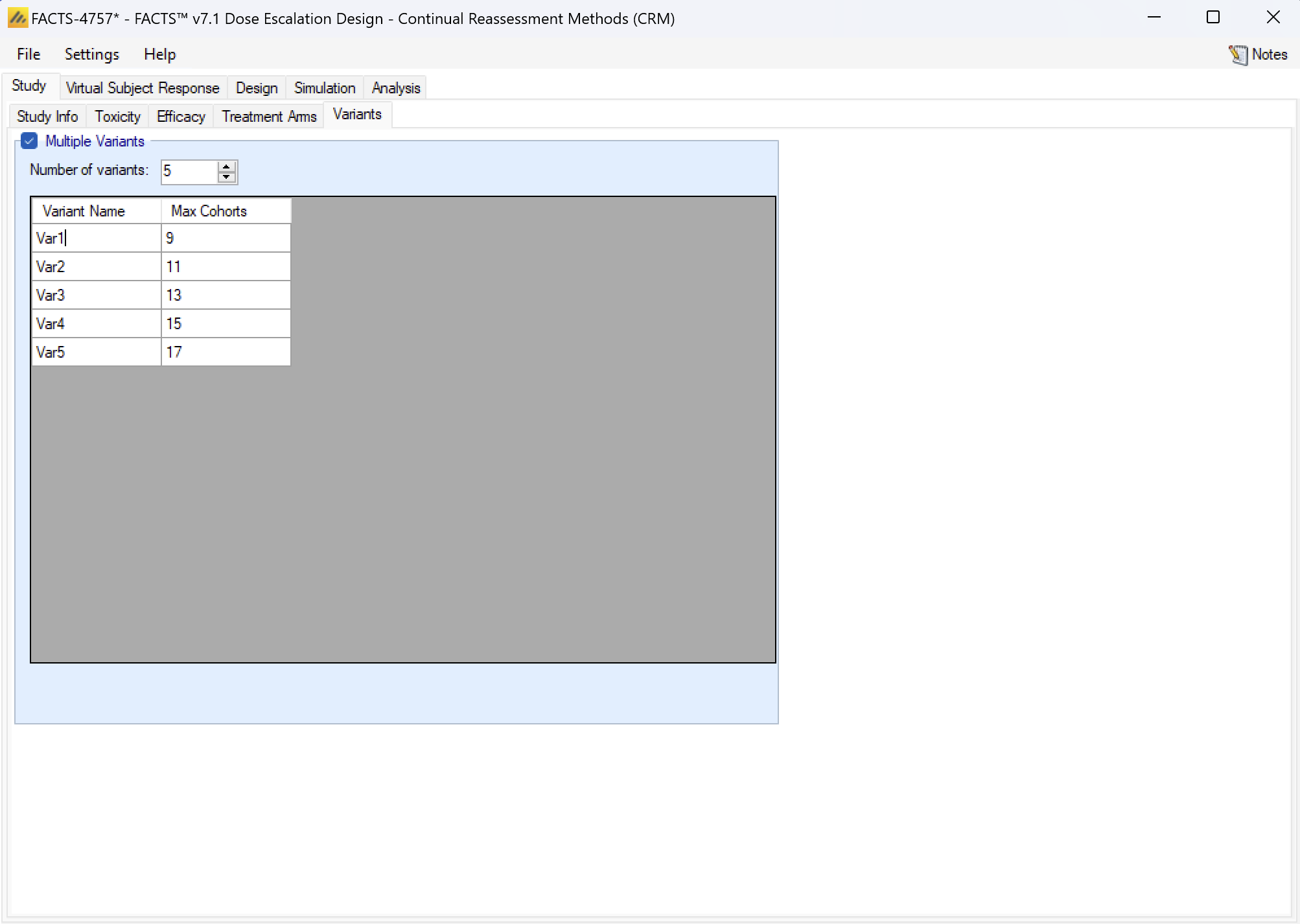 In FACTS 6.1 N-CRM has the new feature of ‘design variants’ that allow the user to easily simulate and evaluate an N-CRM design at different sample sizes. This change includes 4 elements: