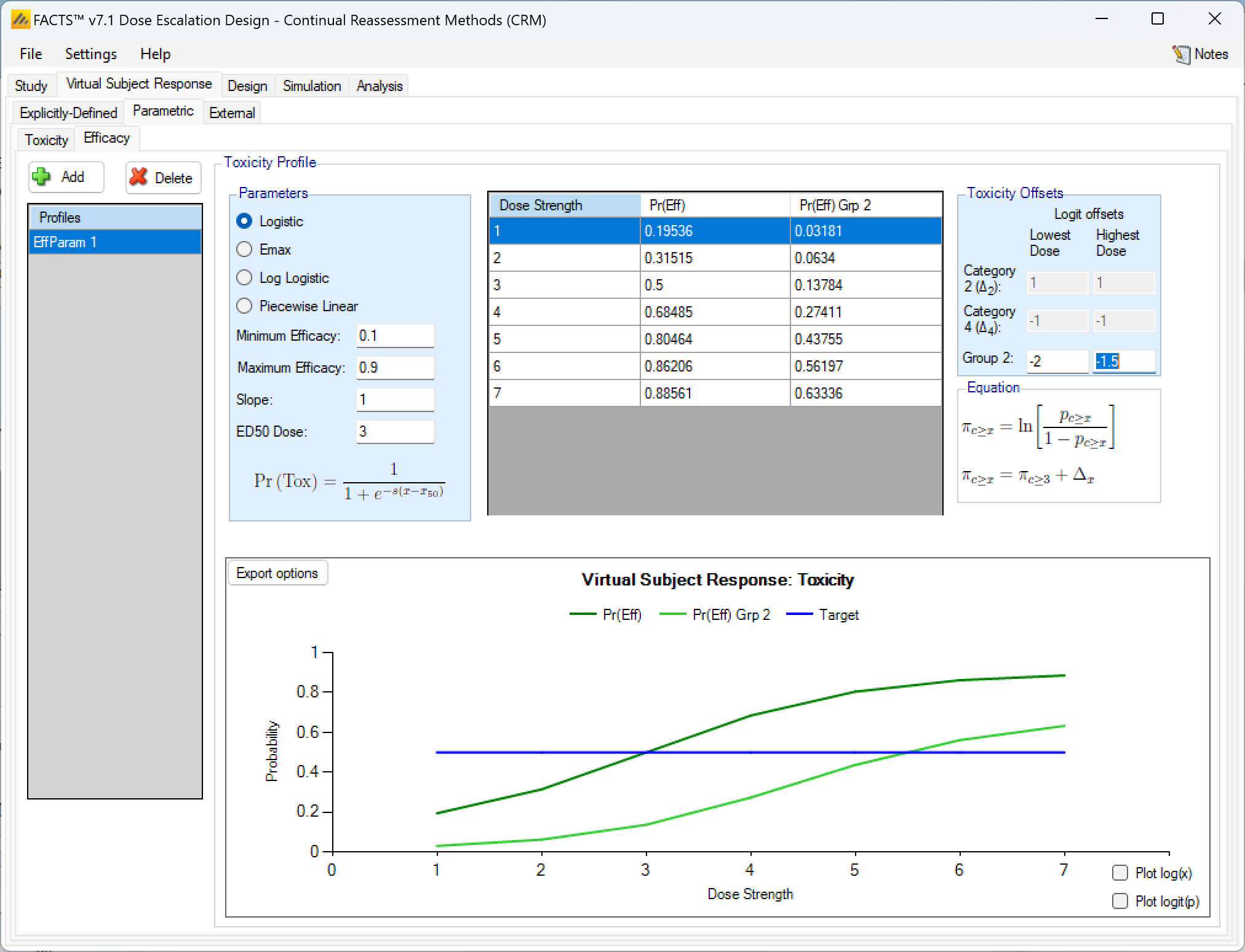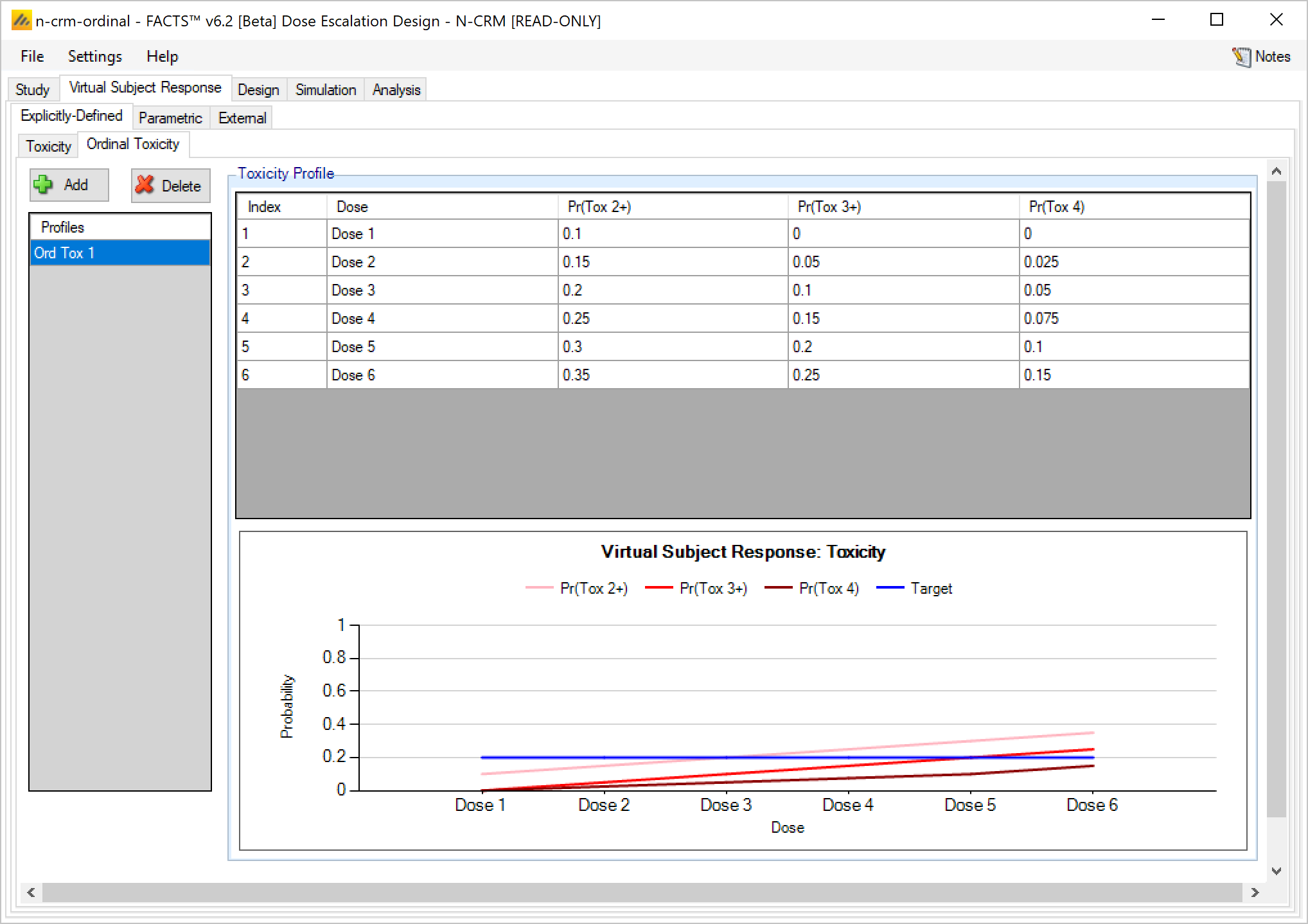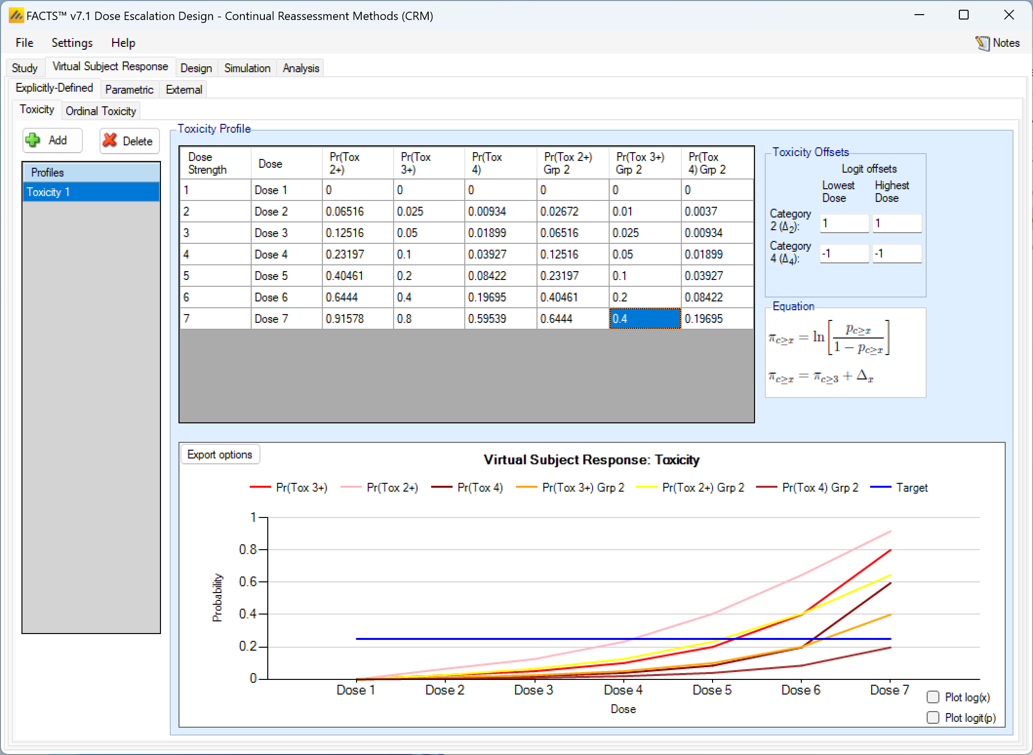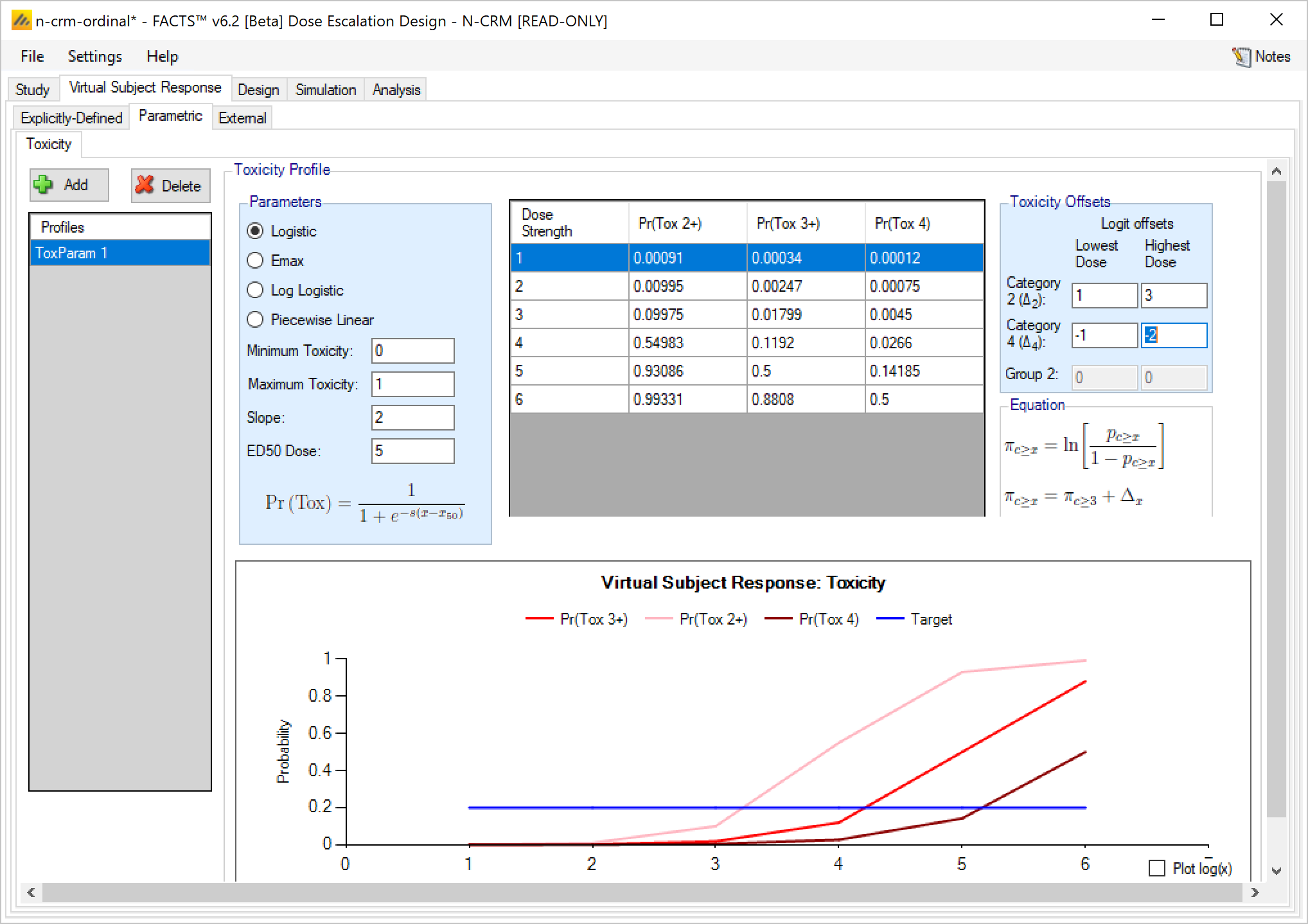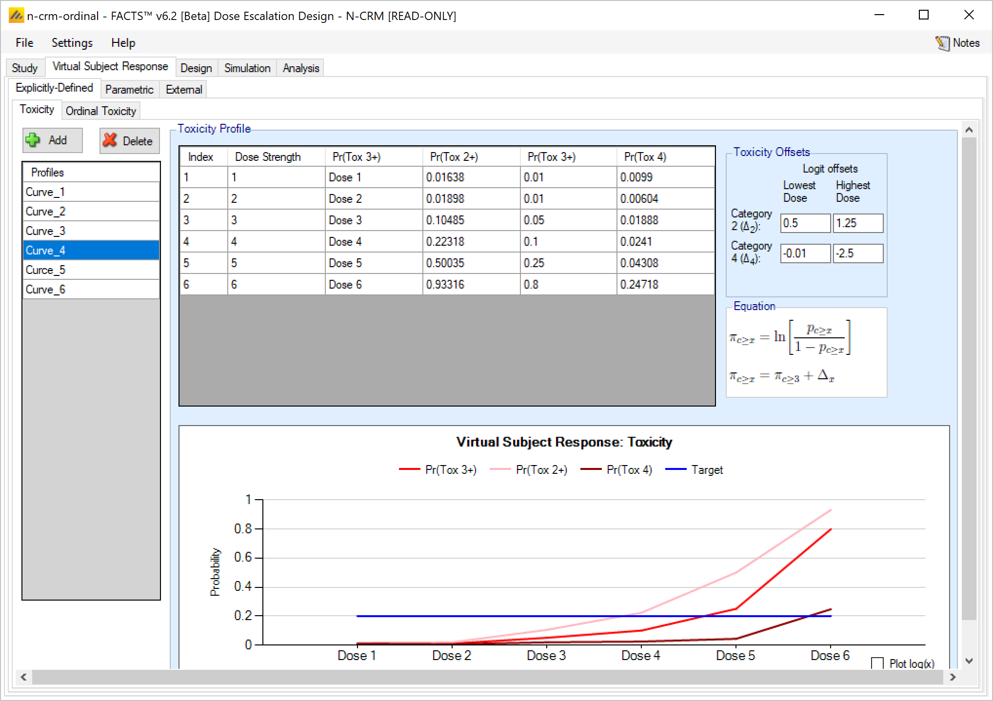 - Improved Ordinal Toxicity model – the way the likelihood is calculated has been improved – reducing the uncertainty in the model fit. Any design using an ordinal model will need to re-calibrate the prior if you move the design to FACTS 6.3. If you have a design already complete, or in execution we recommend you remain using the earlier version of FACTS for that trial.