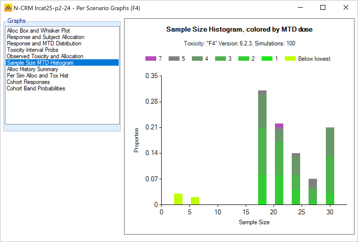 - If ordinal toxicities are being simulated, the run-in may should at the first observed category 2 toxicity (rather than a category 3 toxicity)