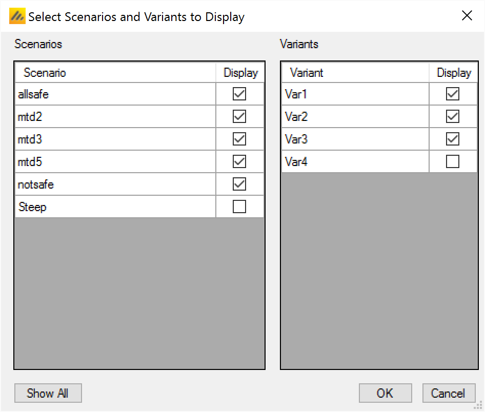 - On the simulation tab FACTS will display a copy of each simulation scenario for each variant.