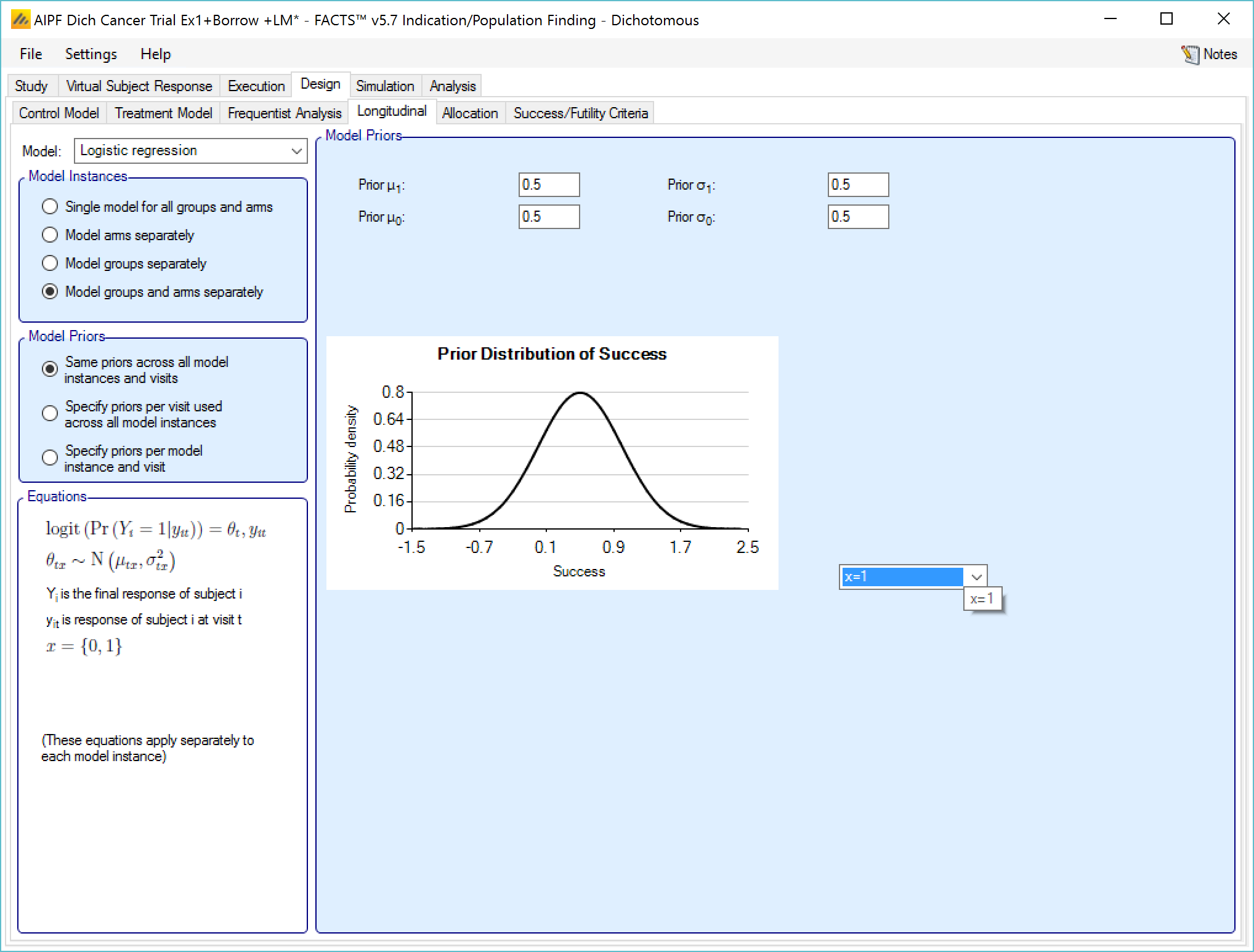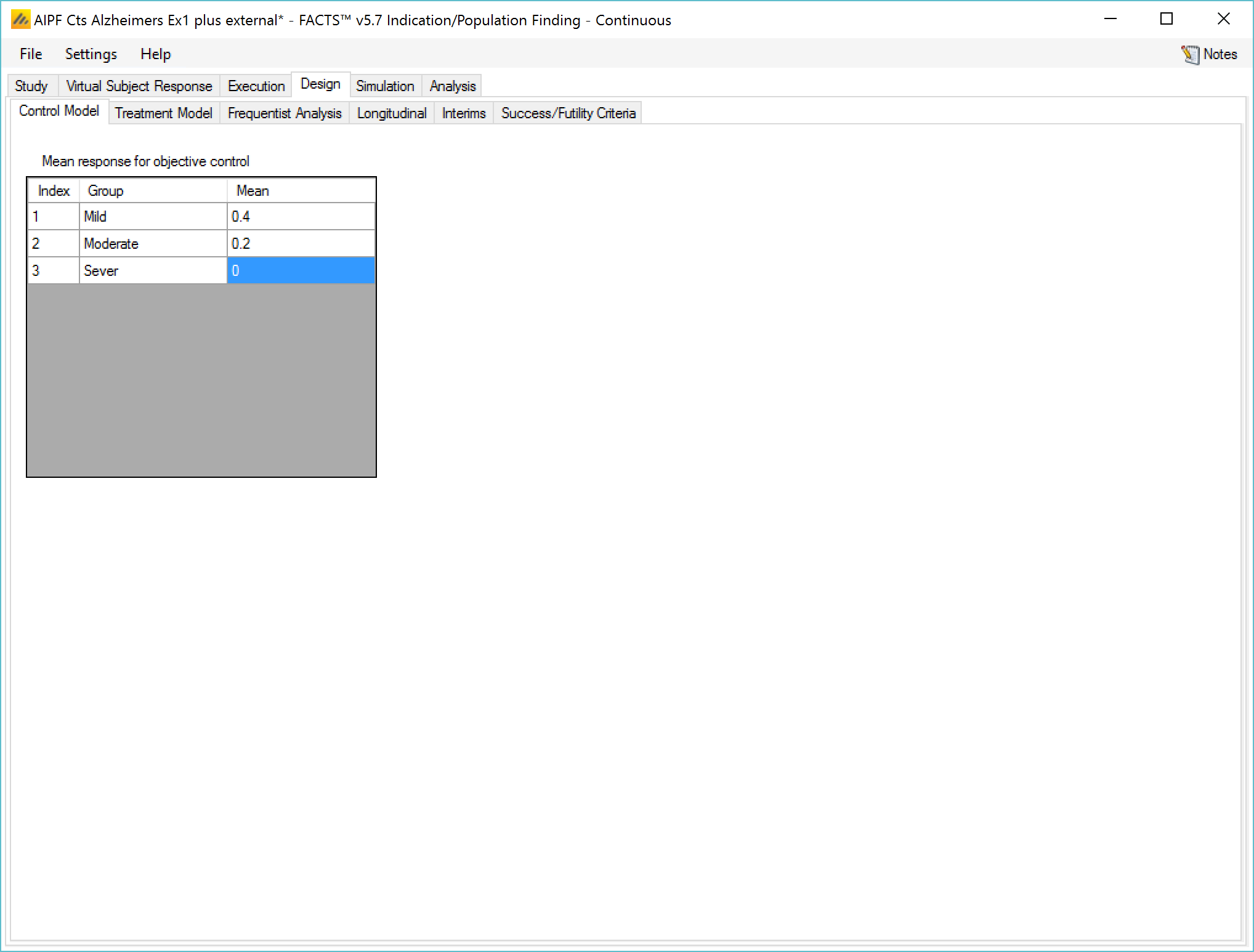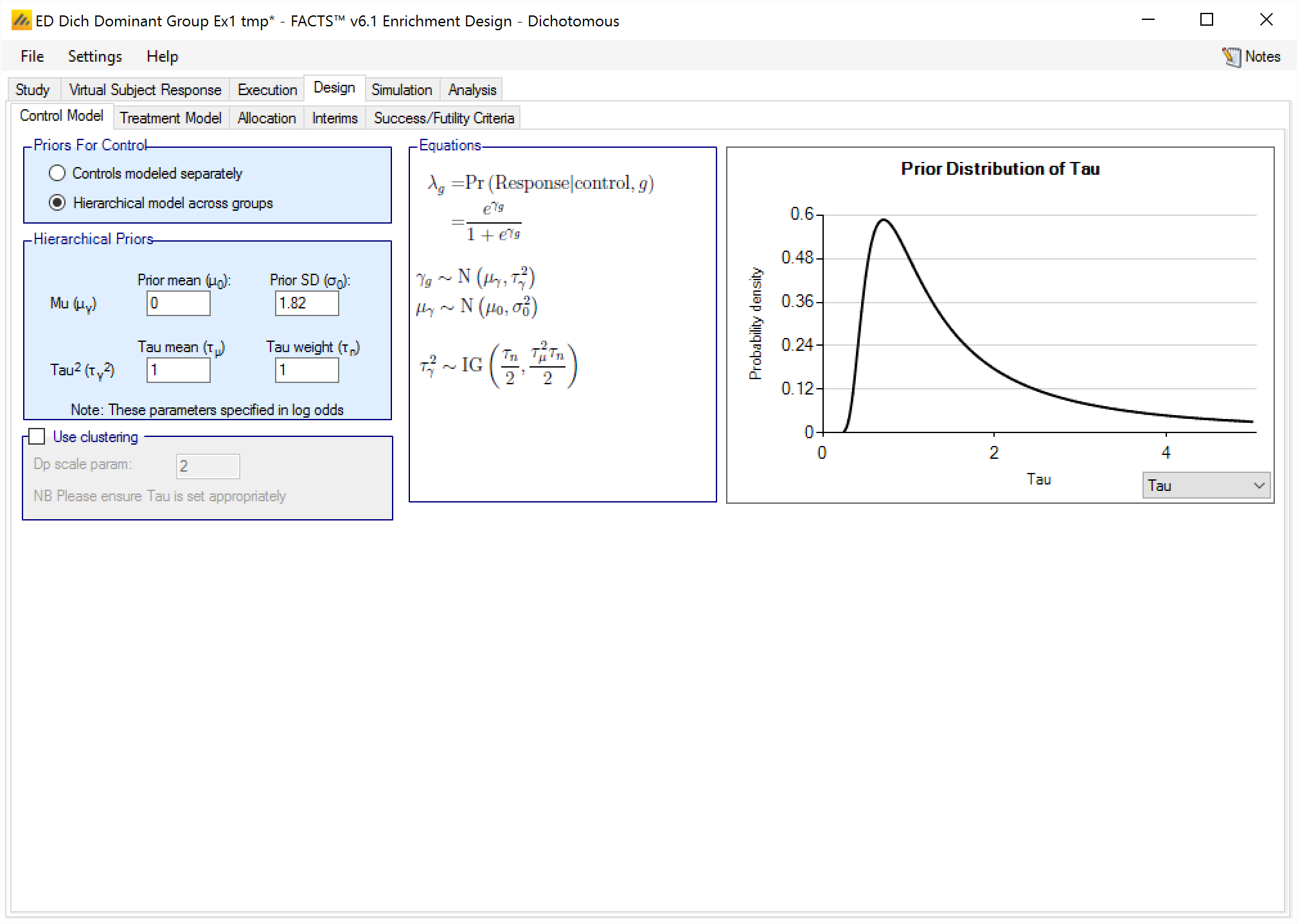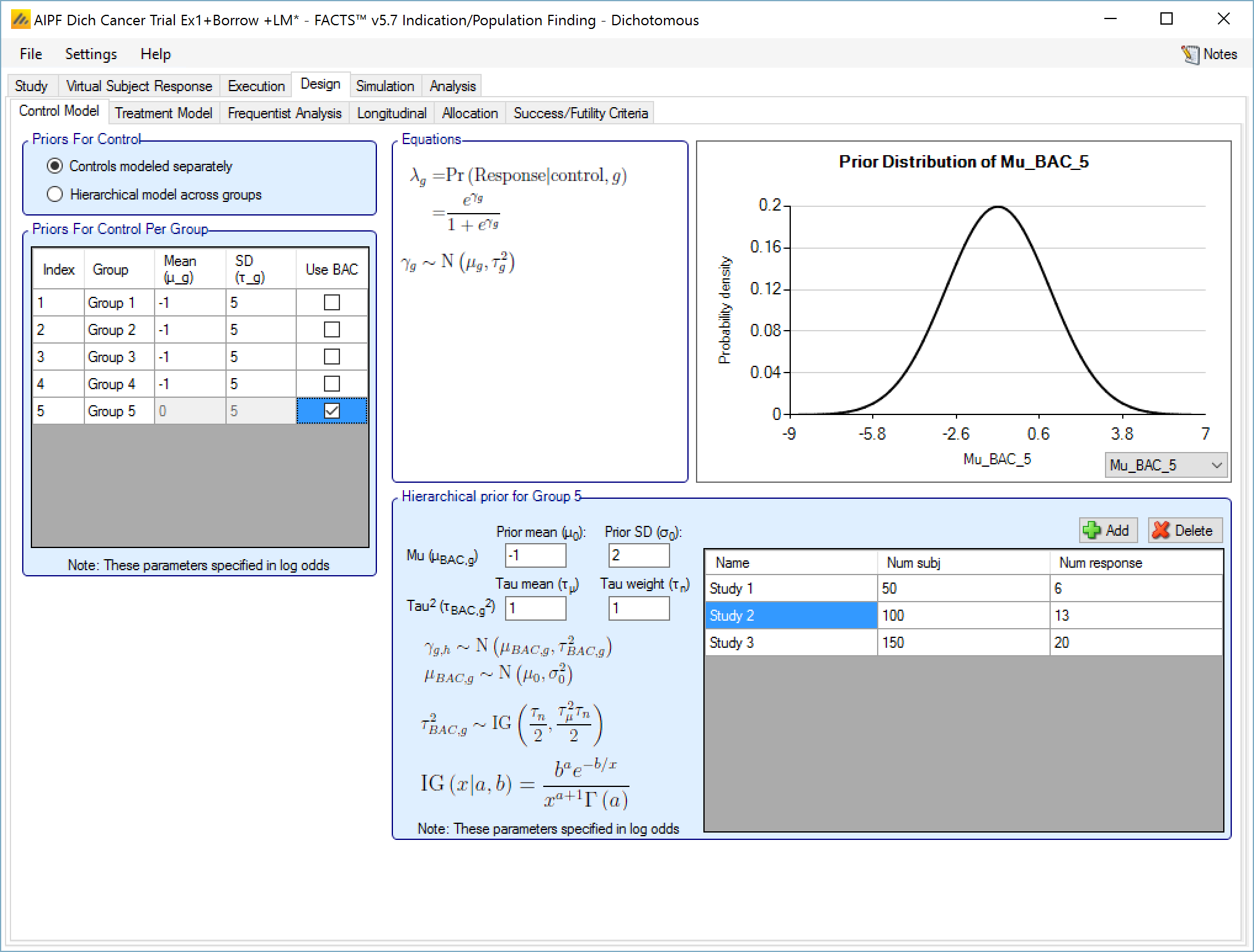 If on the Study > Study Info tab, ‘include historical control’ has been selected then the control model is simply the specified fixed mean response on control in each group.