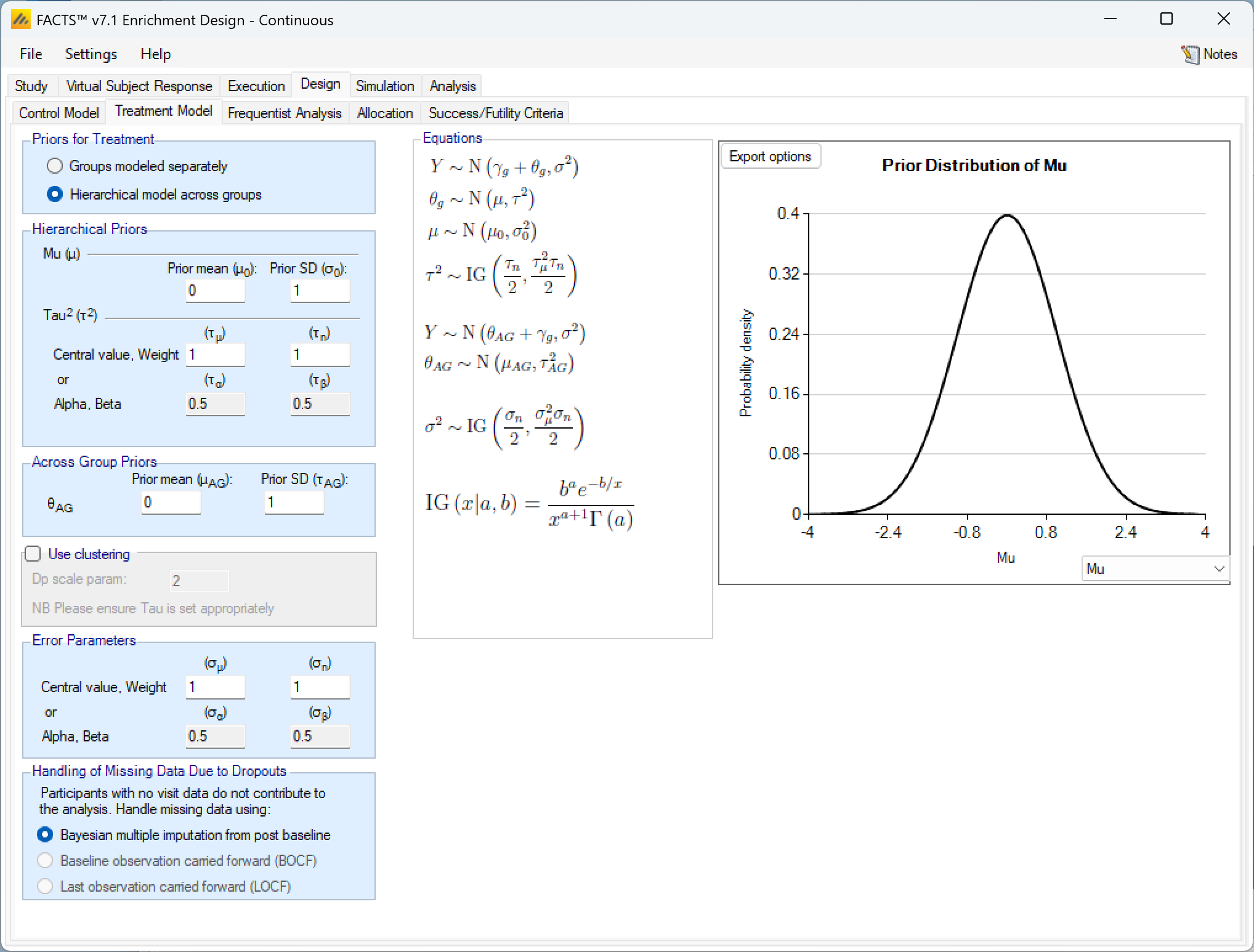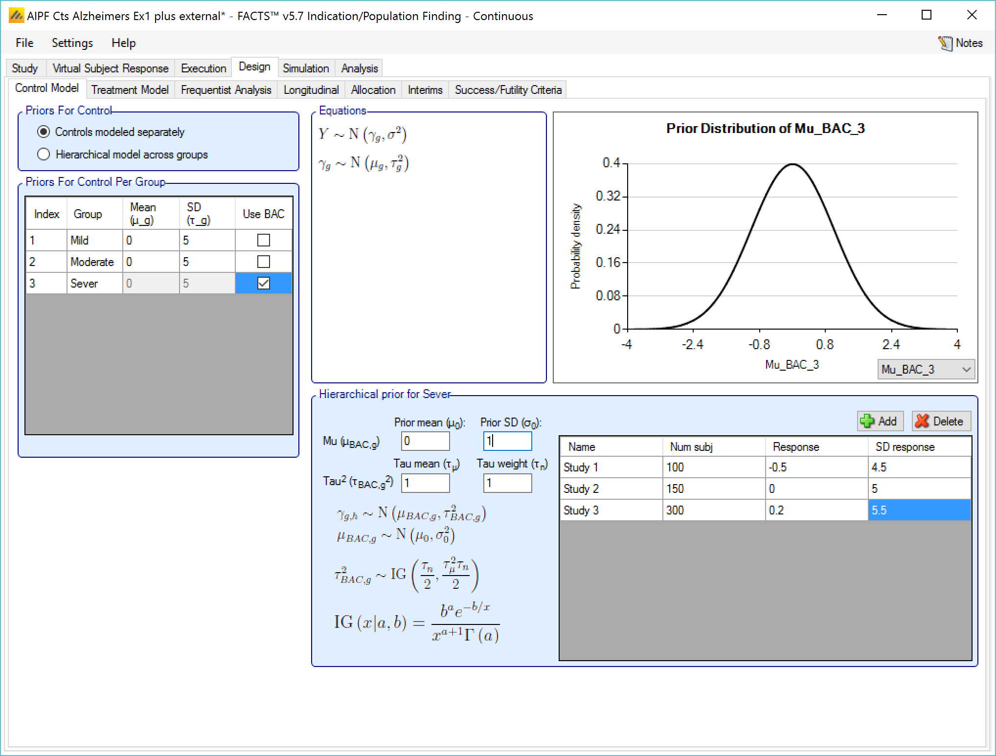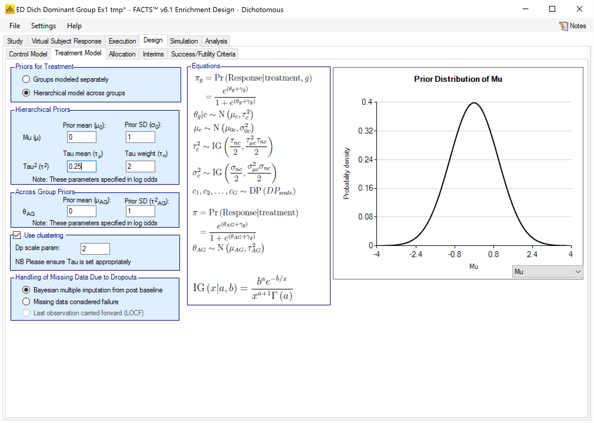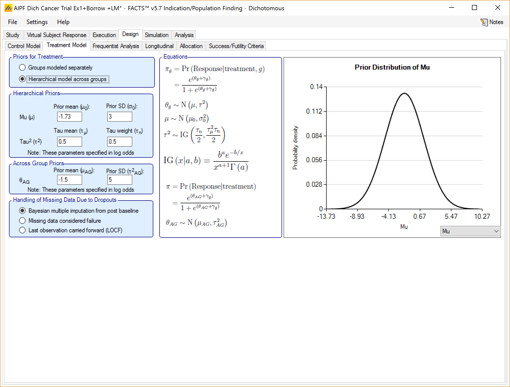 - Set the prior mean value for Mu as the expected mean control response (continuous endpoint) or log odds of the treatment difference from control (dichotomous endpoint)