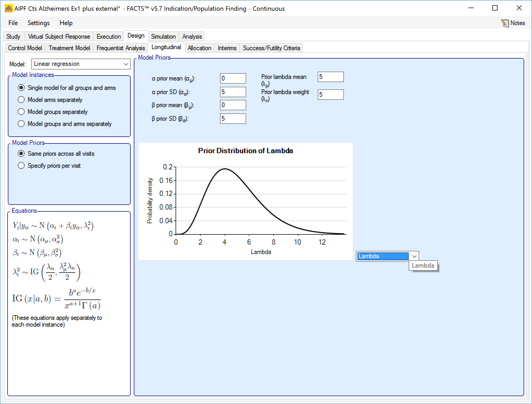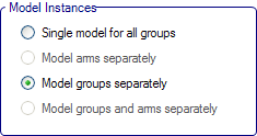 Like the other models, the user can select how many distinct instances of the model are fitted, and whether there is a common set of values for the priors for each instance or individually specified priors for each instance.