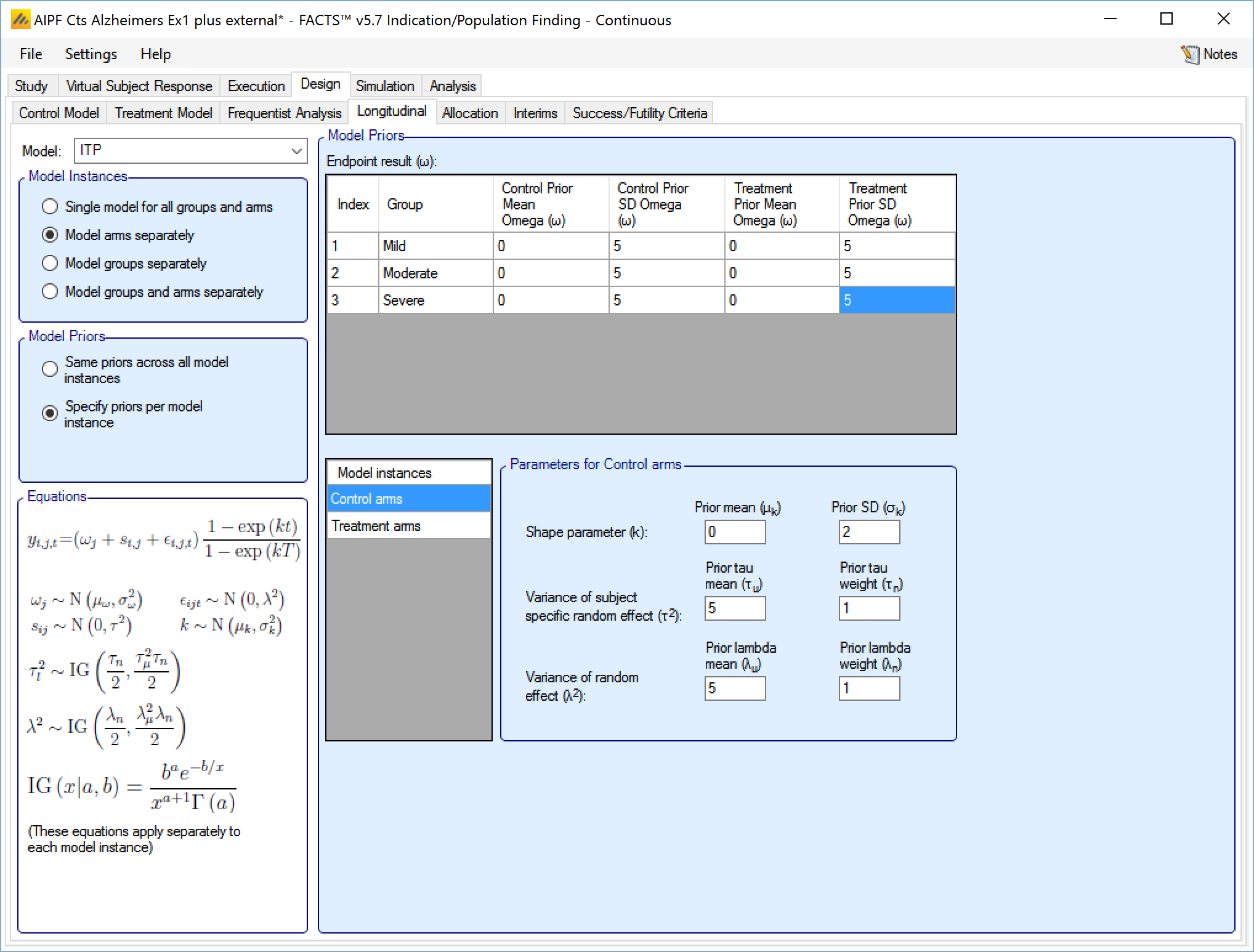 If on the Study > Study Info tab, ‘include control treatment arm’ has been selected then the control model can be separate models or a hierarchical model across the groups.