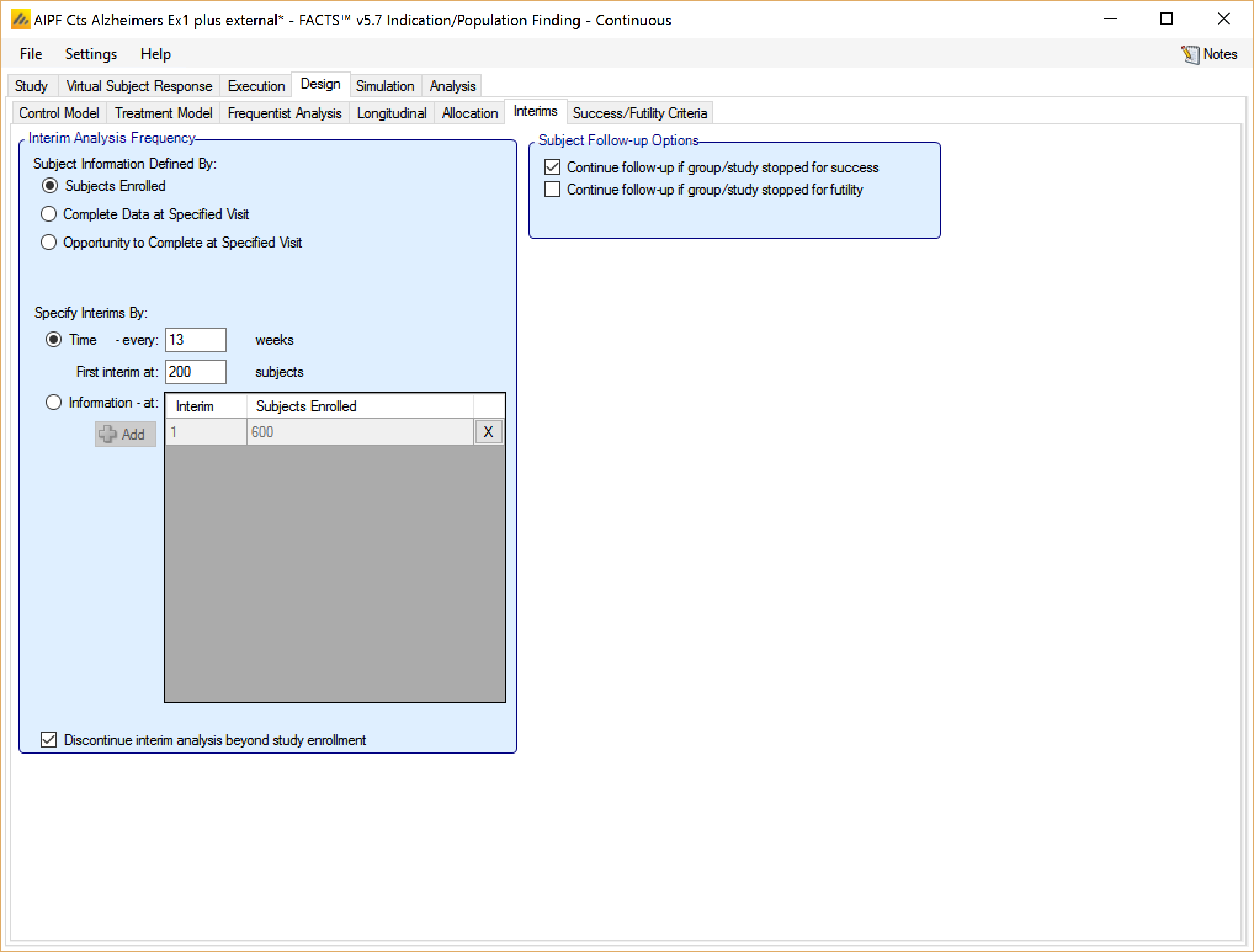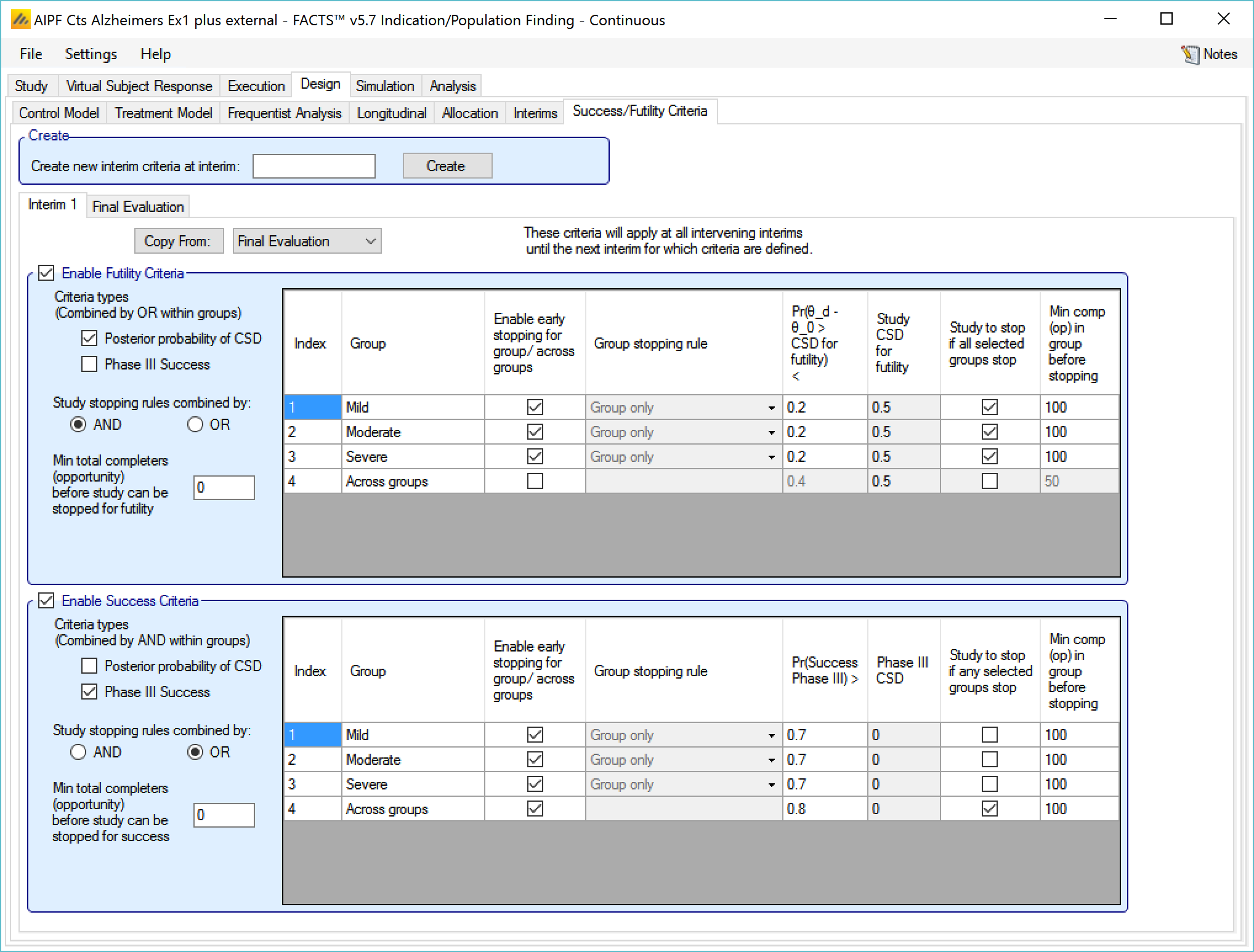 Enable Futility/Success Criteria, these check boxes allow early stopping for either success and/or futility to be easily disabled.
