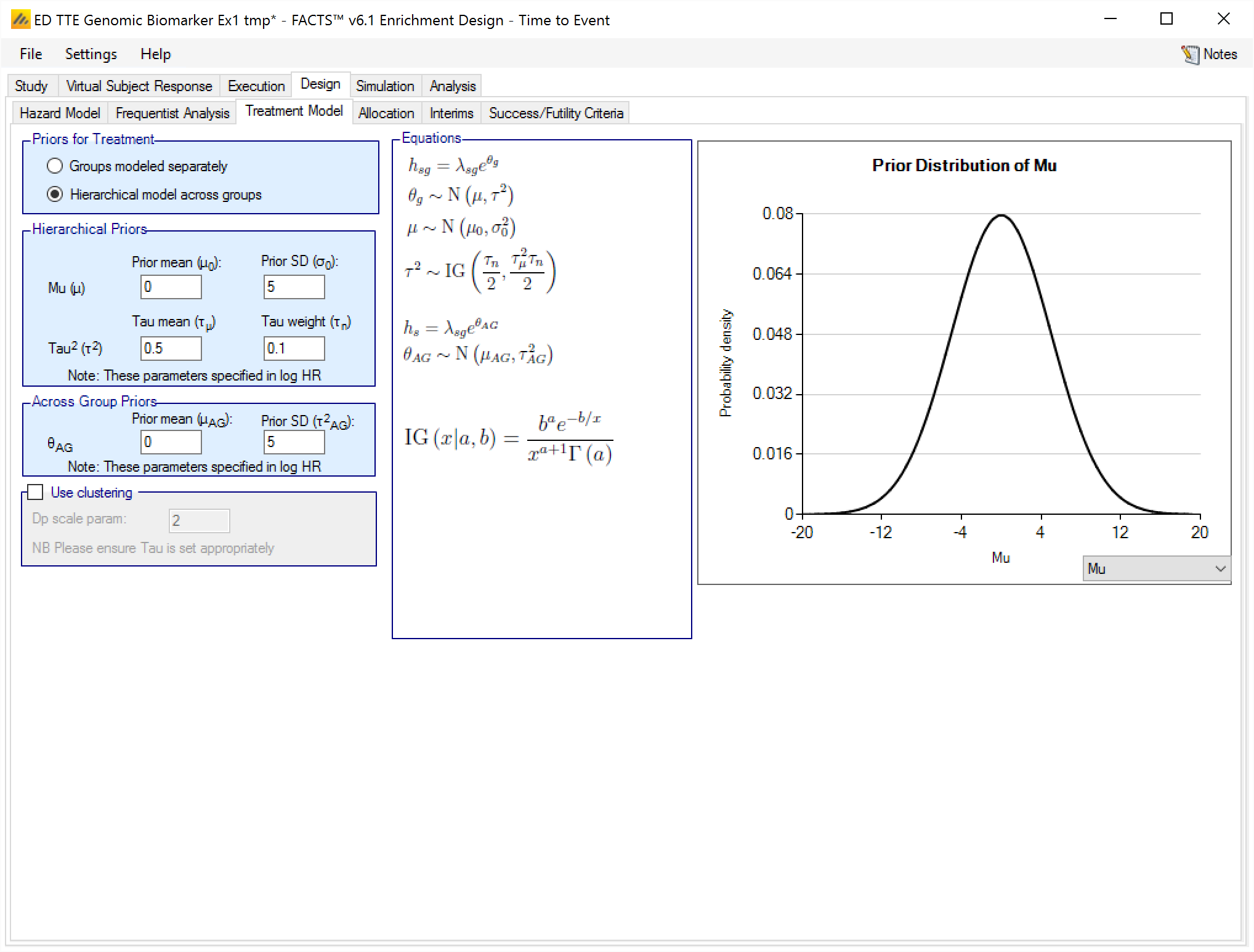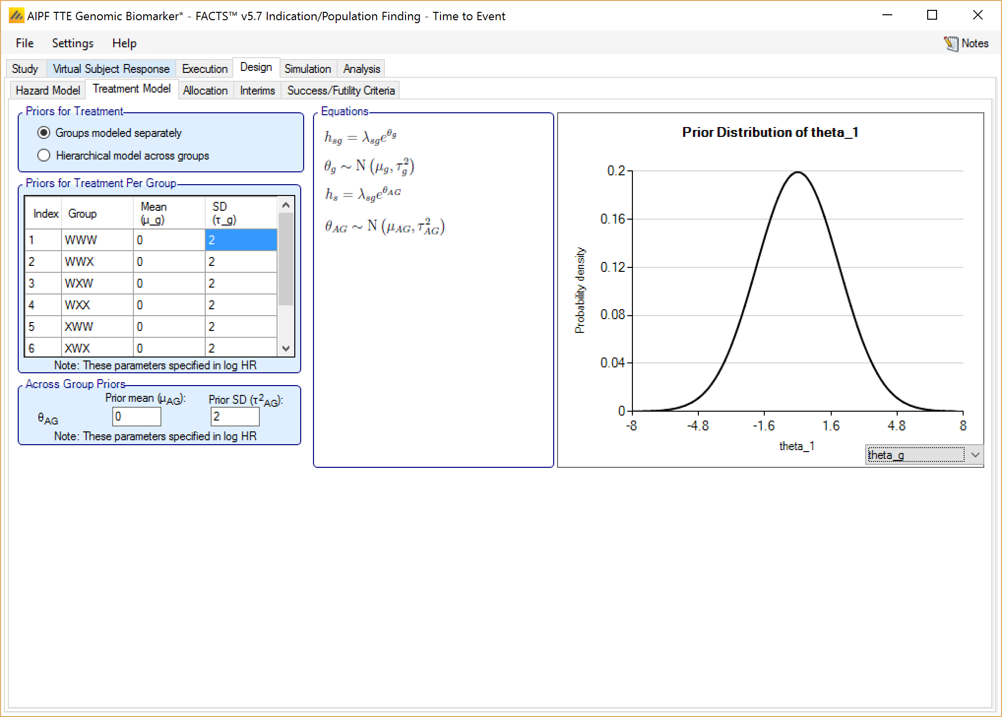 If the treatment arms in different groups are to be modeled with a hierarchical structure, then the user enters the hyper-parameters for the hierarchical model (similar to the hierarchical model for the control arms – see section 0 above). These are