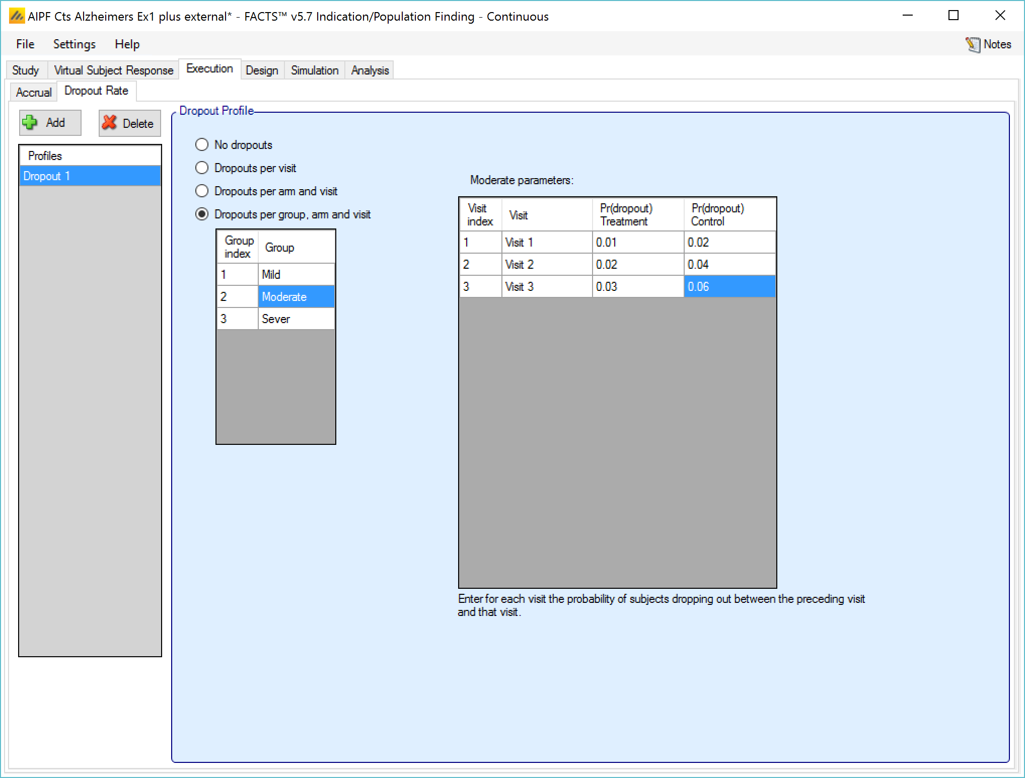 - Specifying dropouts as a fraction of all patients per visit (“Dropouts per visit”);