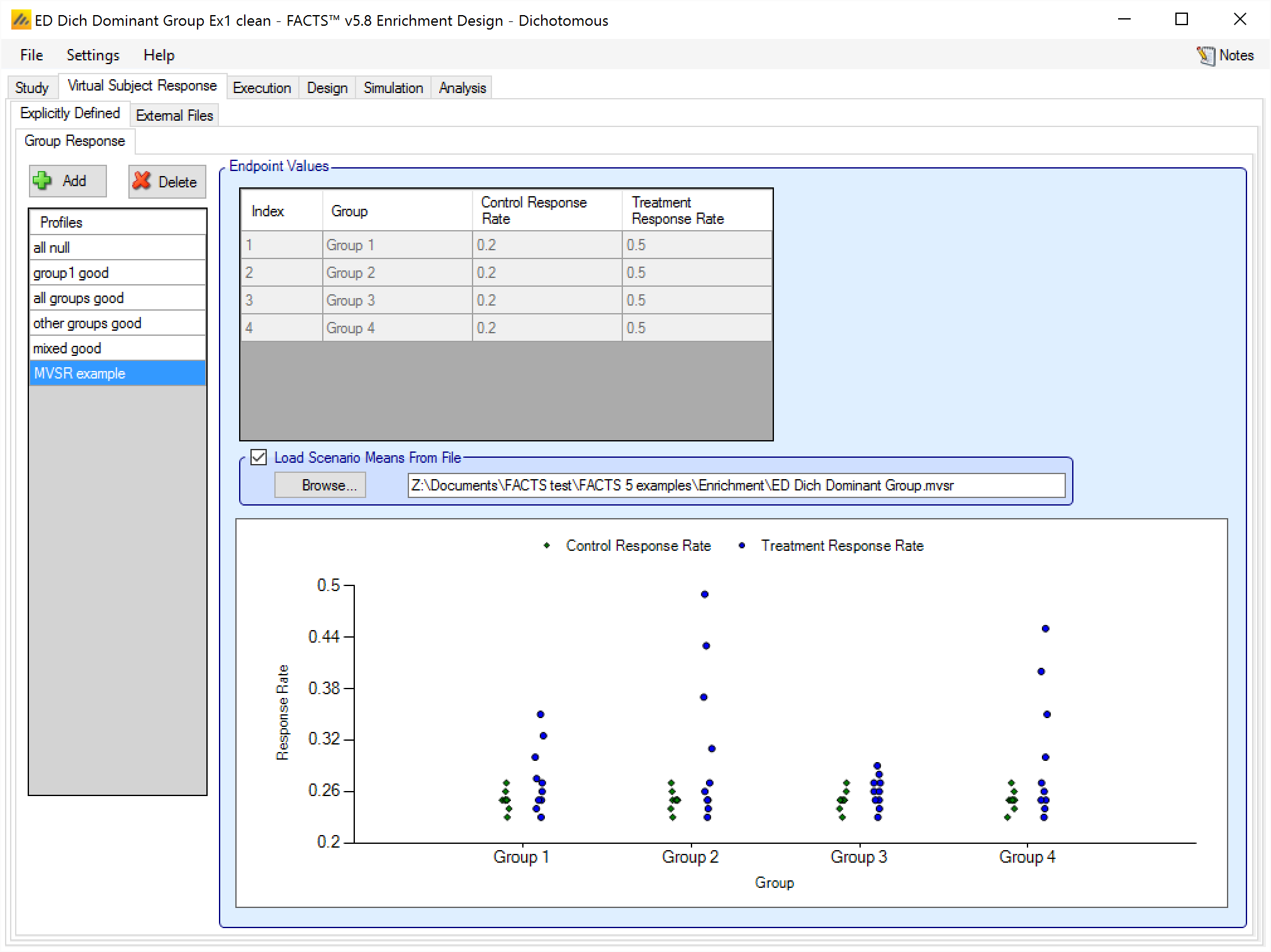 If the “Load scenario means from a file” option is selected then in scenarios using this profile the simulations will use a range of dose responses.